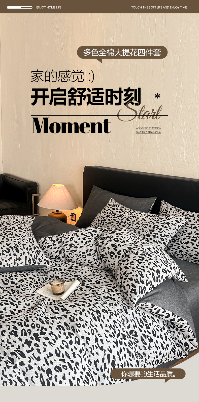 (总)莱茵家居 2026新款A类60支全棉纯棉复古侘寂风色织提花四件套-墨隙系列,斑斓-深灰,豹纹-卡其,豹纹-深灰,墨隙-卡其,墨隙-深灰