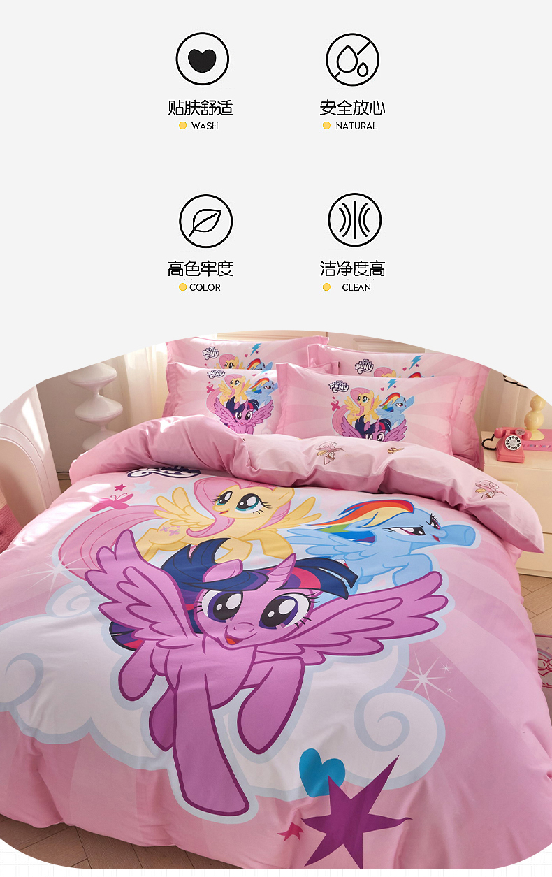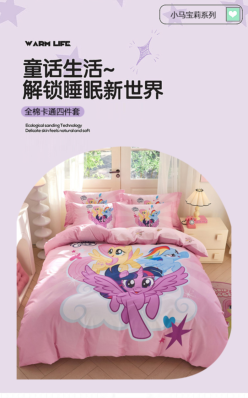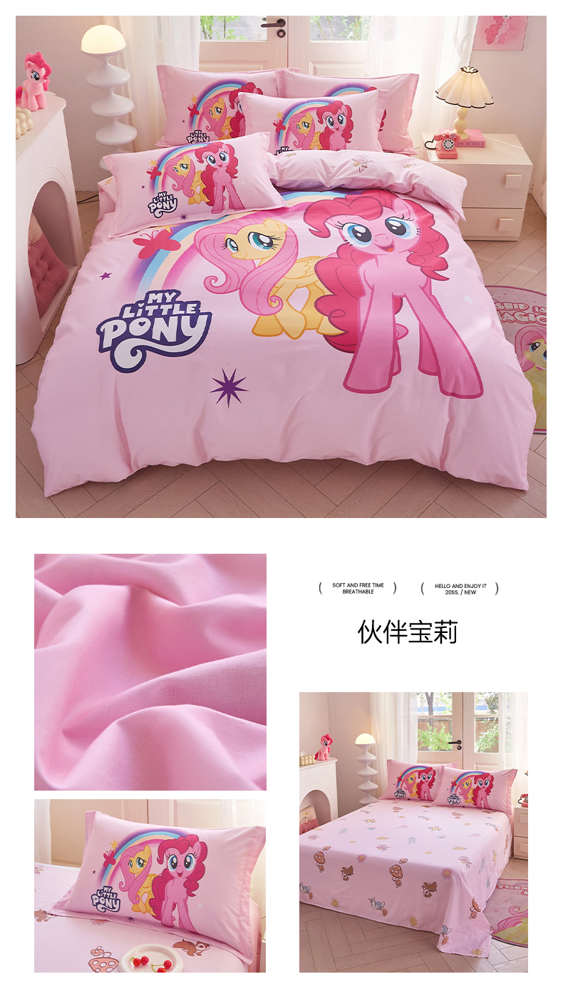 当前位置: 91家纺网 > 商品网购 > 床品套件 > 四件套 > 全棉普通四件套 > 蘭菲家纺 2026新款全棉纯棉大版卡通四件套-小马宝莉 飞翔.宝莉