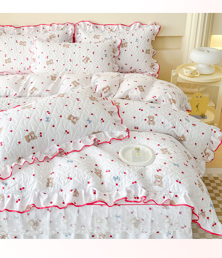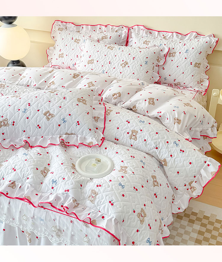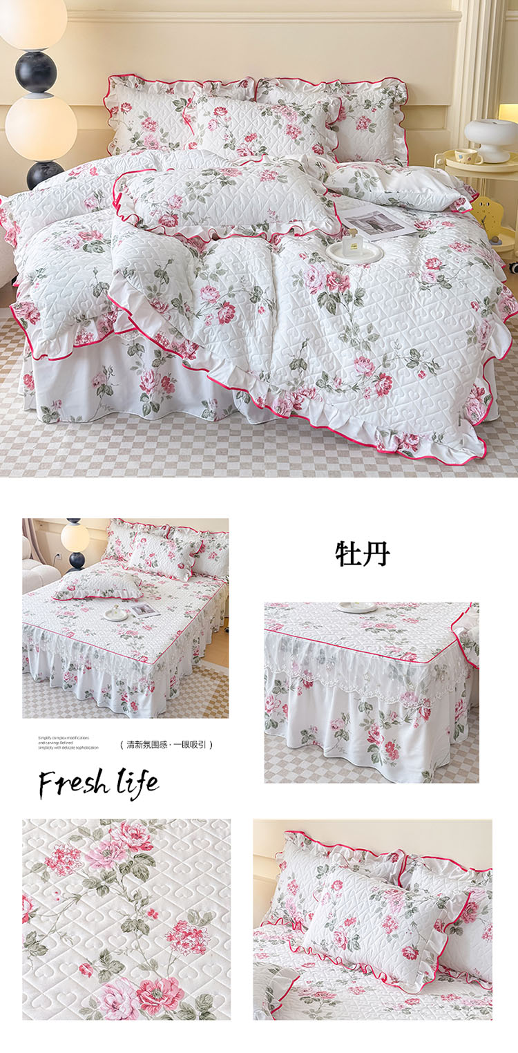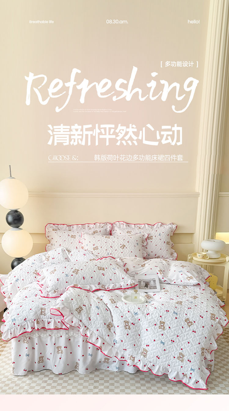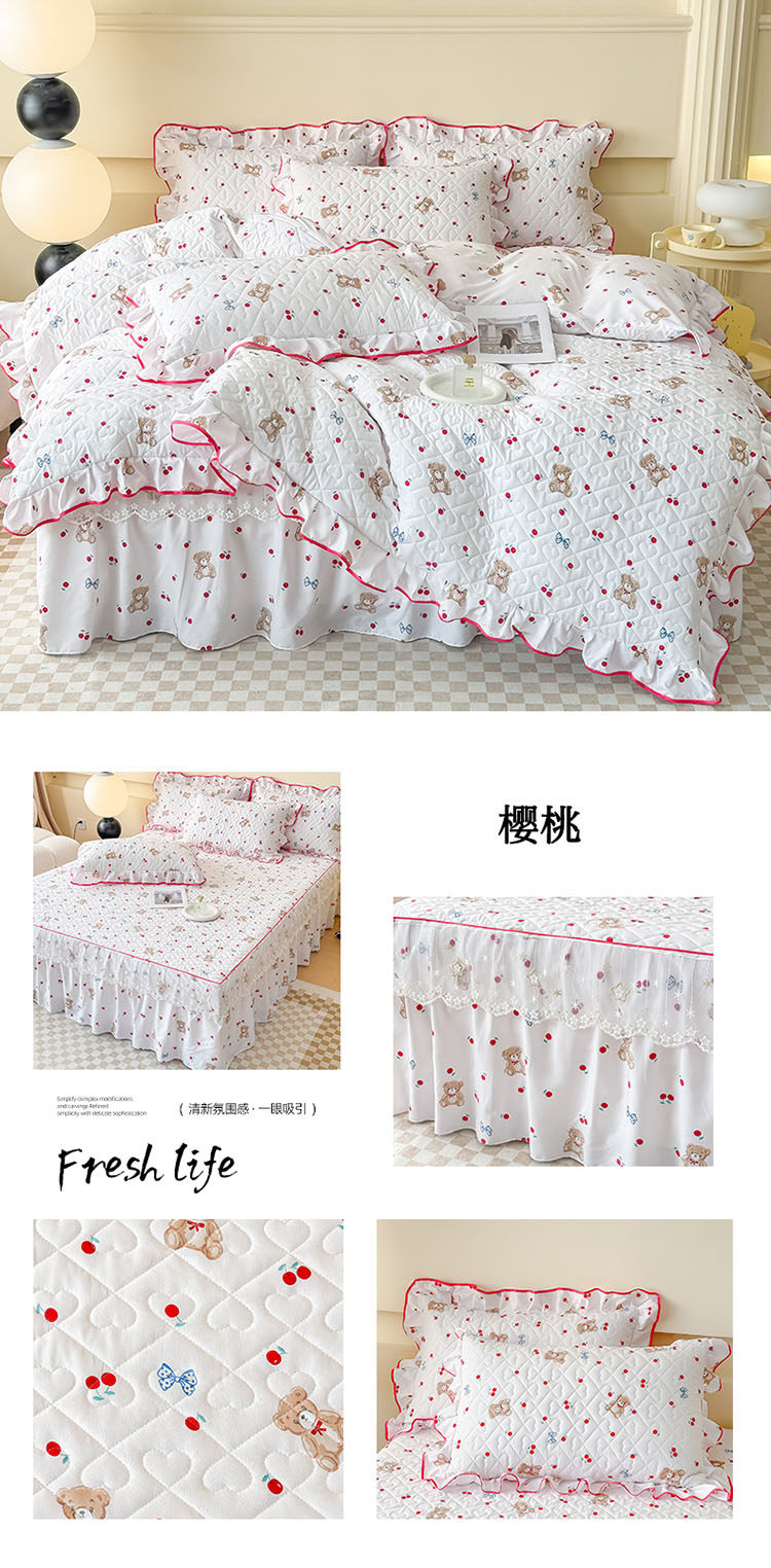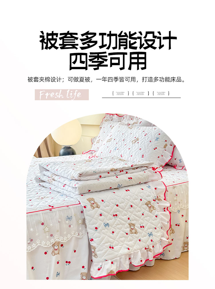 (总)2025云朵棉多功能印花全夹棉床裙四件套 夹棉被套空调被蕾丝花边加棉床裙三件套枕套夏被单品,繁花,樱桃,碧瑶,兰亭,蘑菇,牡丹,羽叶,倩影