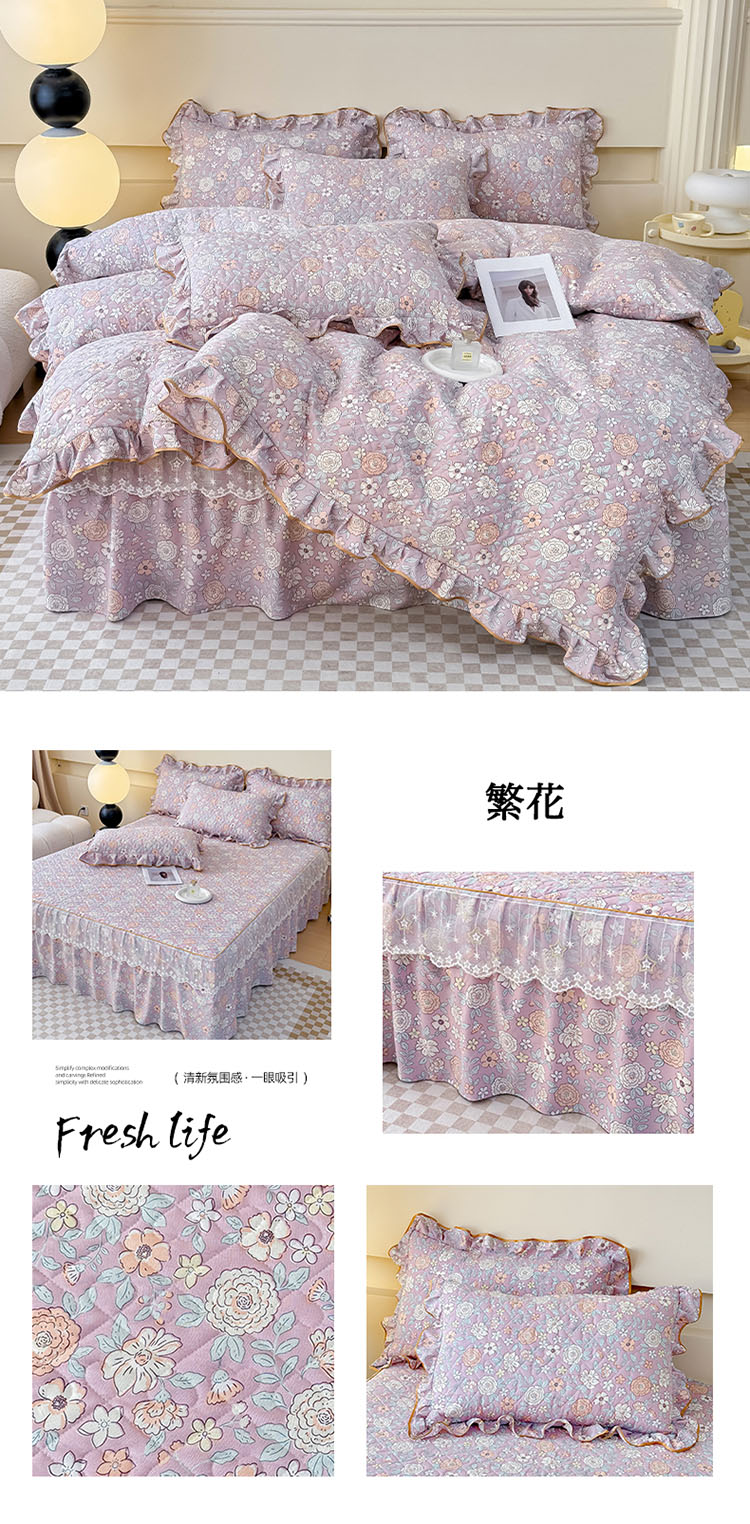 商品名称:(总)2026云朵棉多功能全夹棉印花床裙四件套 夹棉被套空调被蕾丝花边夹棉床裙夏凉被三件套夏季薄被子