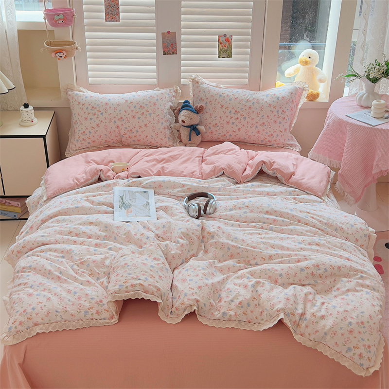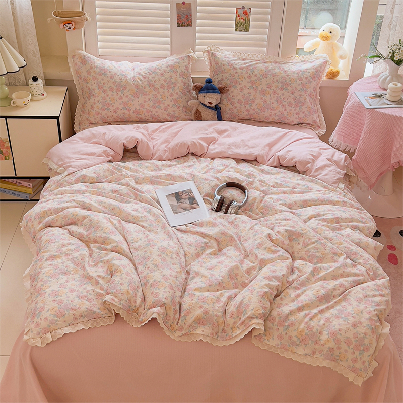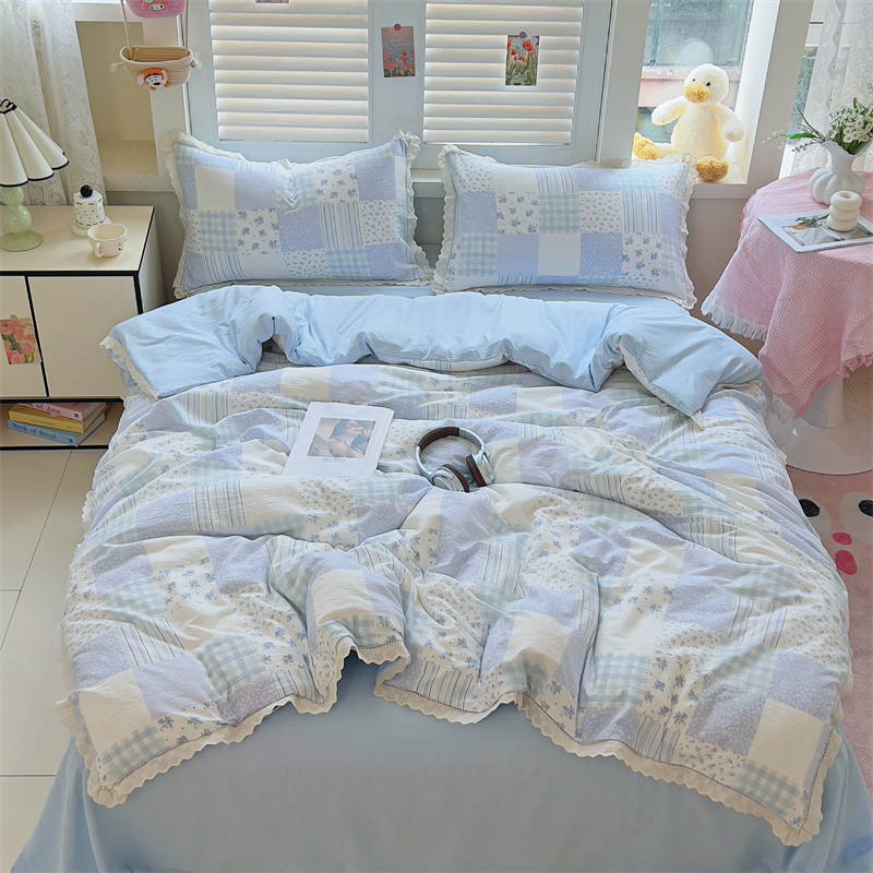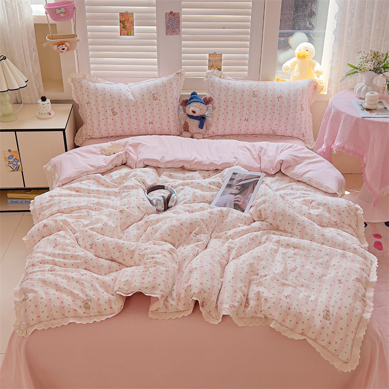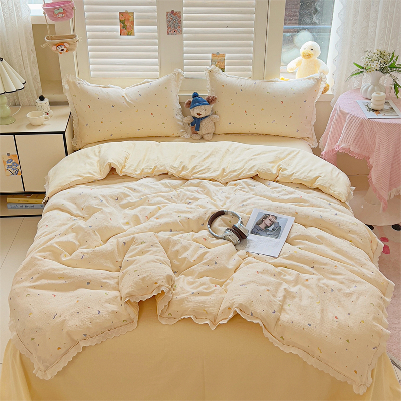 商品名称:(总)壹号库家纺 2026新款云感木棉皱皱纱双层纱四件套-全棉花边款