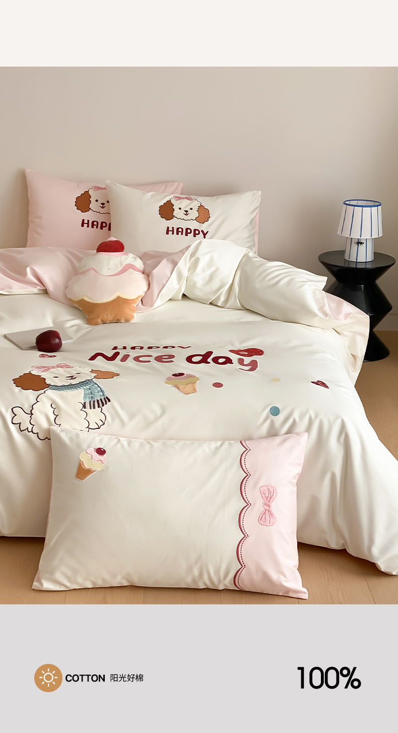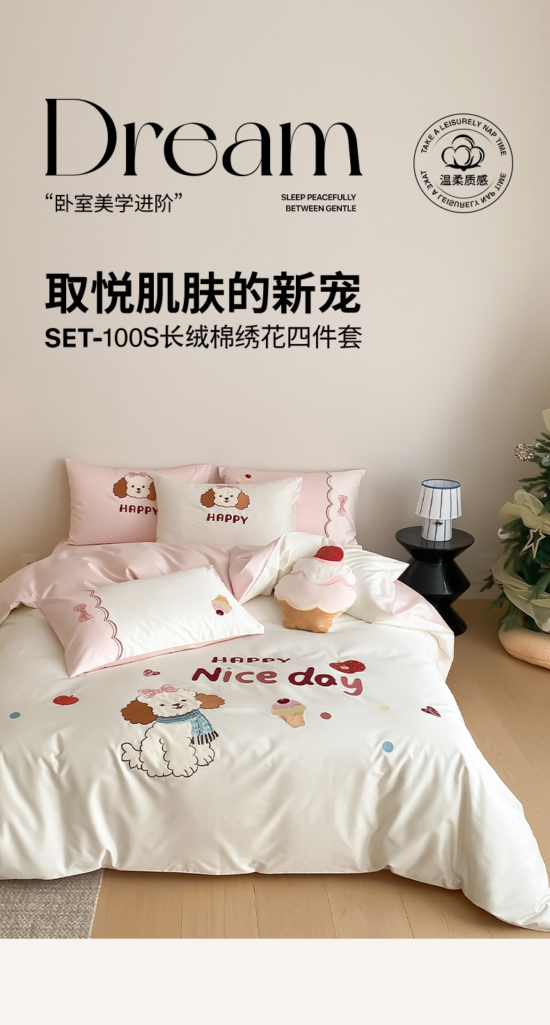 当前位置: 91家纺网 > 商品网购 > 床品套件 > 四件套 > 长绒棉四件套 > 极简 2026新款100s长绒棉纯棉刺绣四件套-奶油小狗 奶油小狗-白