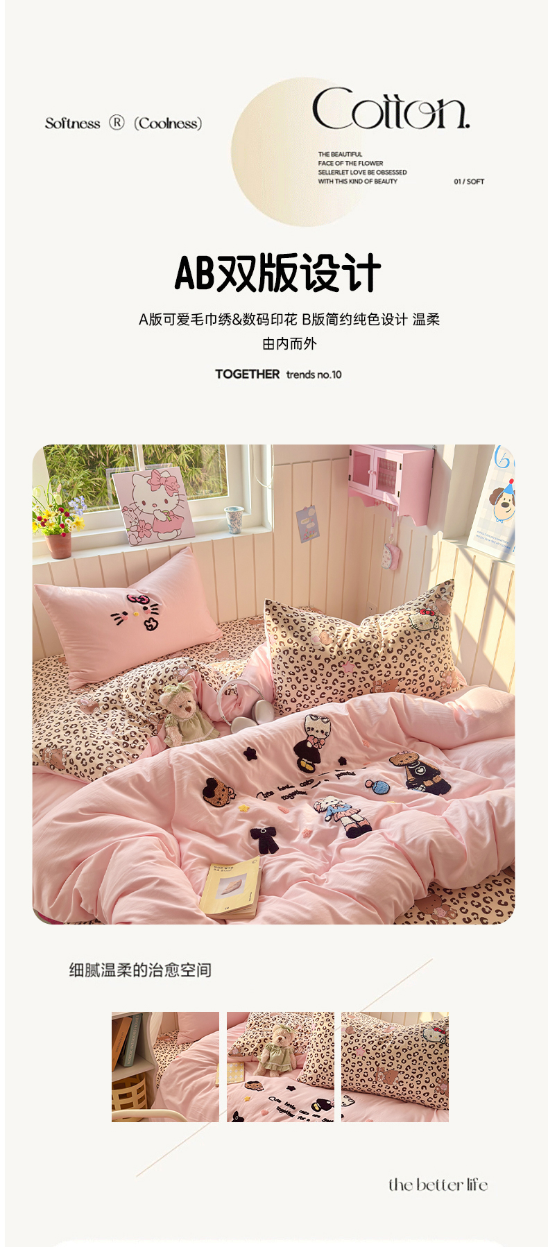 当前位置: 91家纺网 > 商品网购 > 床品套件 > 四件套 > 其它四件套 > 一霖家纺 2026新款云朵棉毛巾绣小清新猫咪系列四件套 星星苹果猫