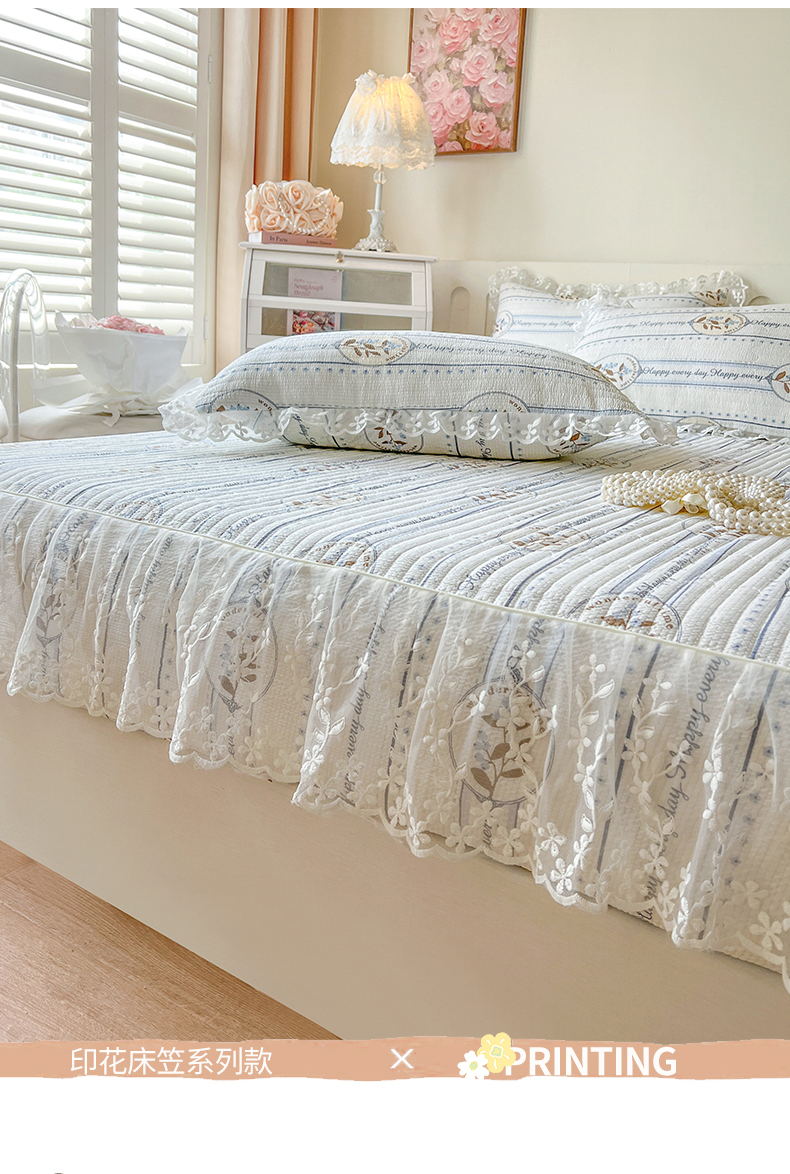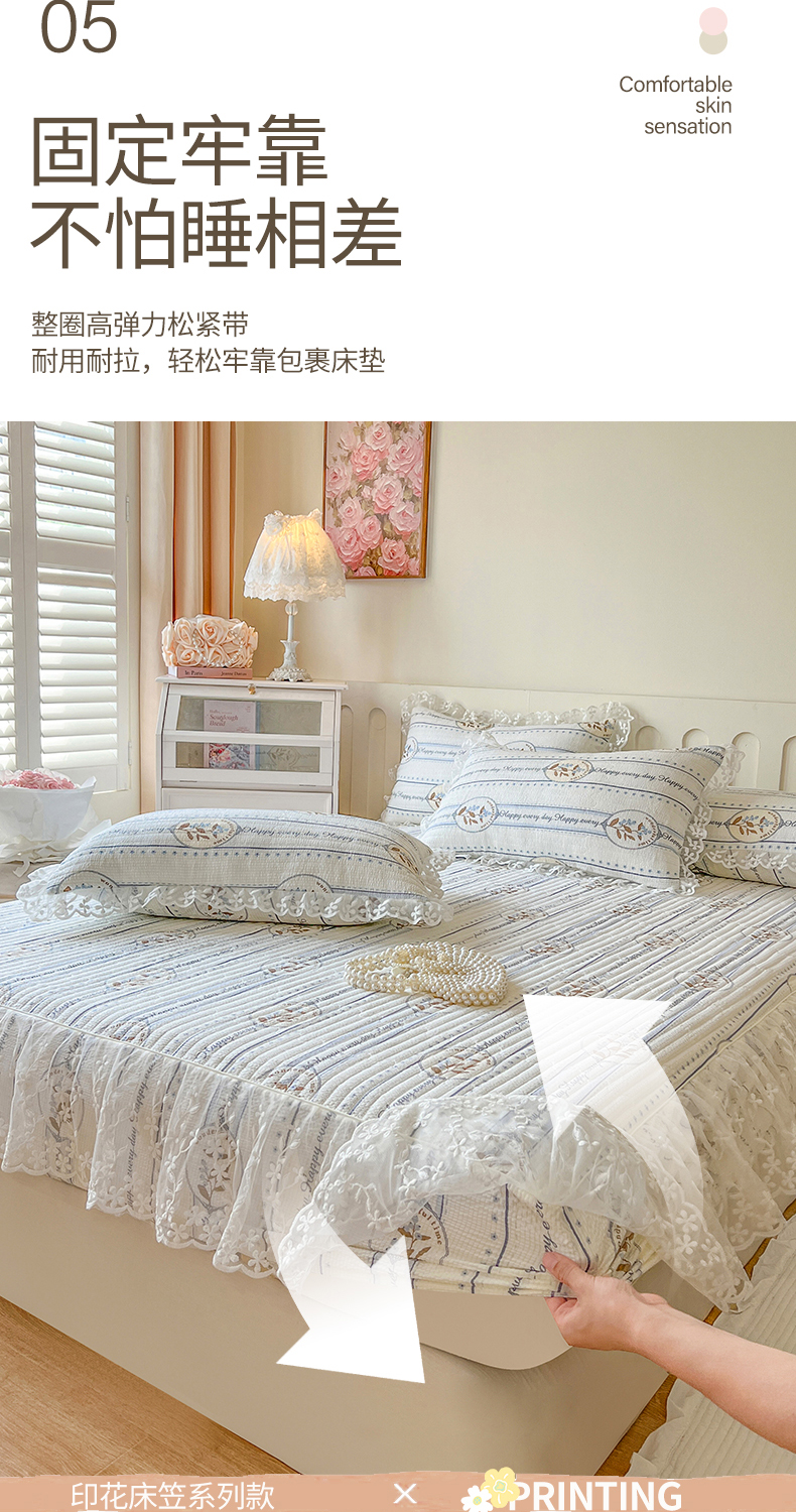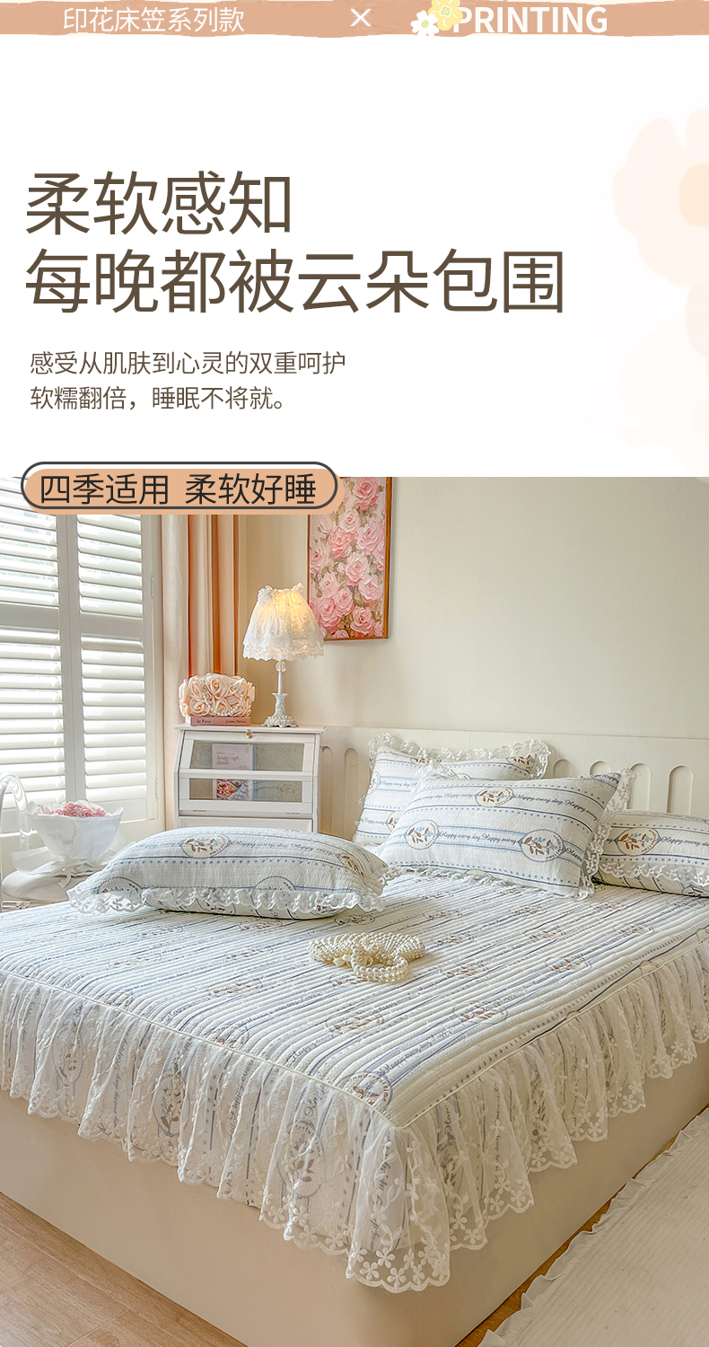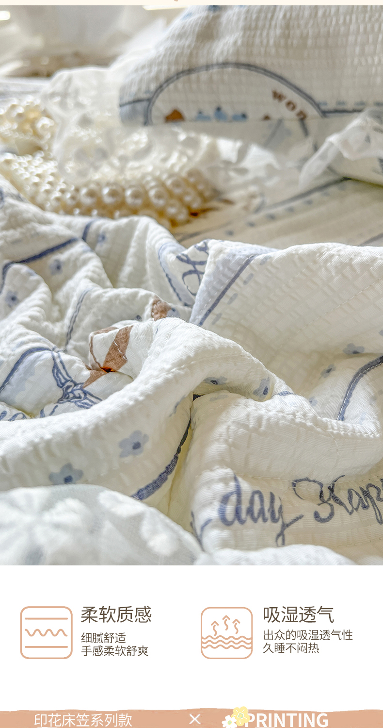 网红馆(ck家纺) 2026新款泡泡棉印花床笠三件套 花莫