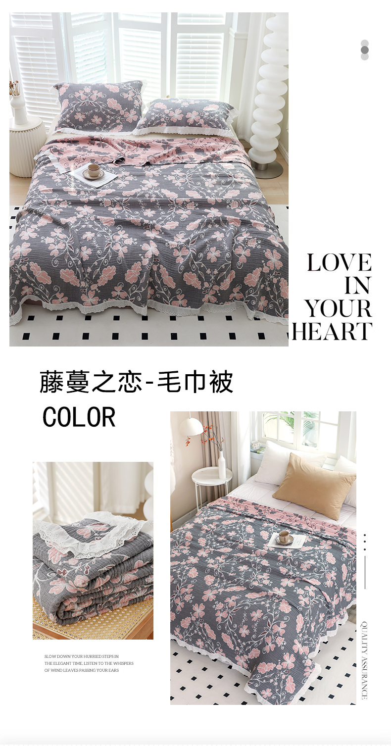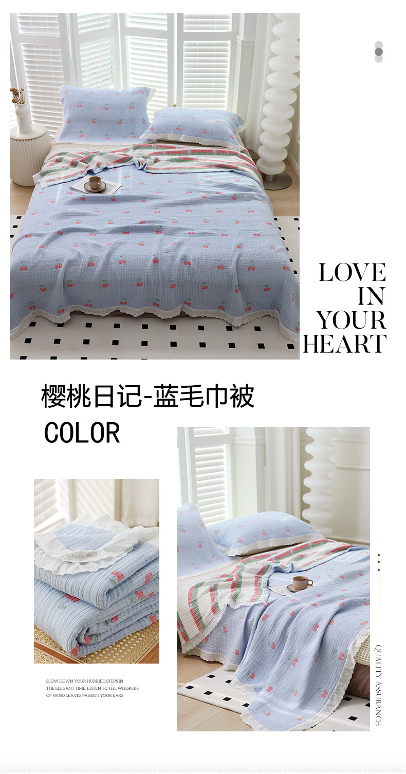 商品名称:朴尔家纺-毛巾被 2026春夏新款韩式花边纯棉竹纤维加大成人纱布毛巾被夏被夏凉被空调被 半夏时光-毛巾被
