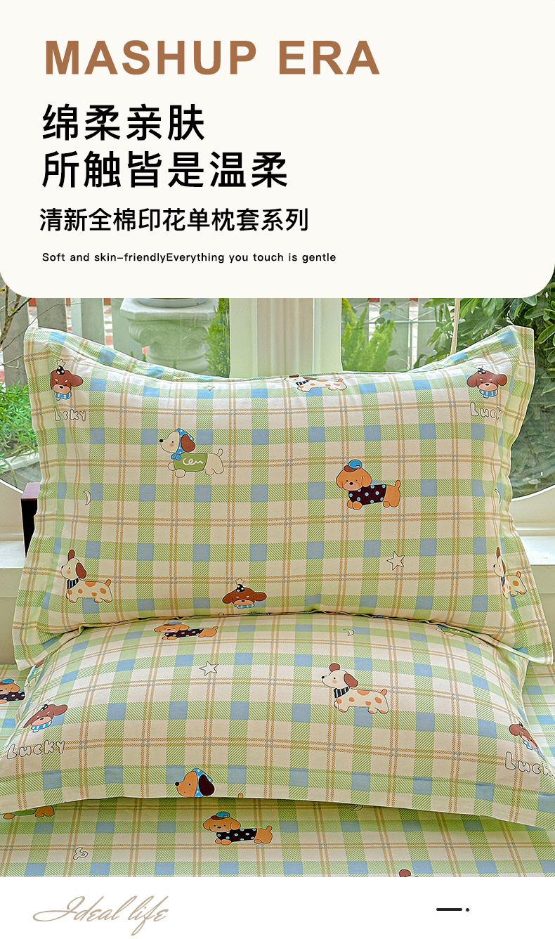 恩泽家纺 2026春夏新款全棉纯棉12868印花四件套及单品系列-单枕套枕套单件 小狗乐乐