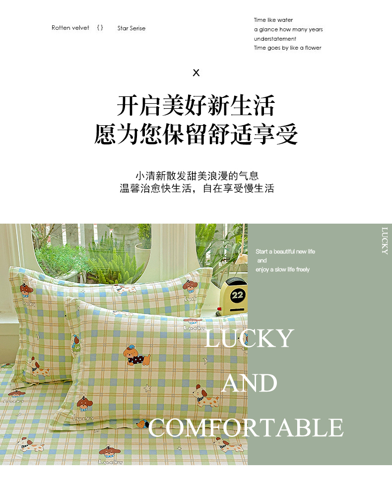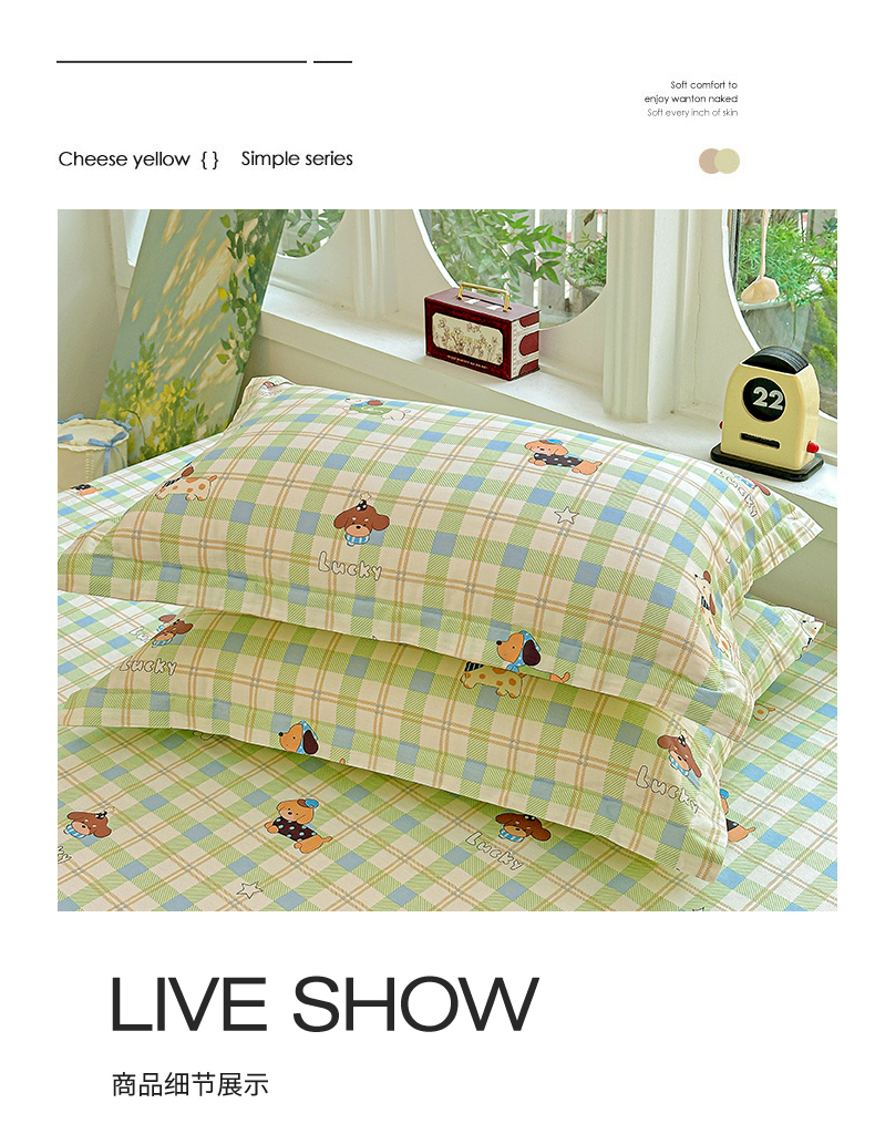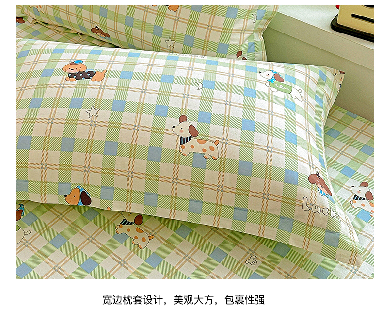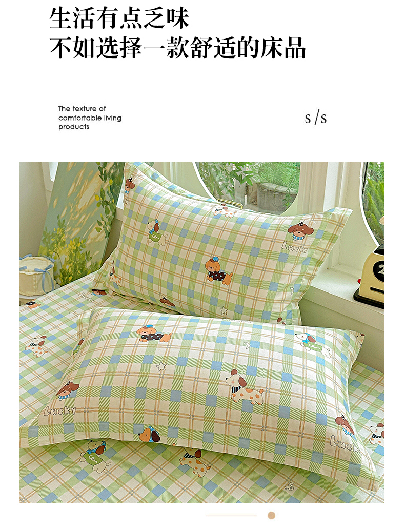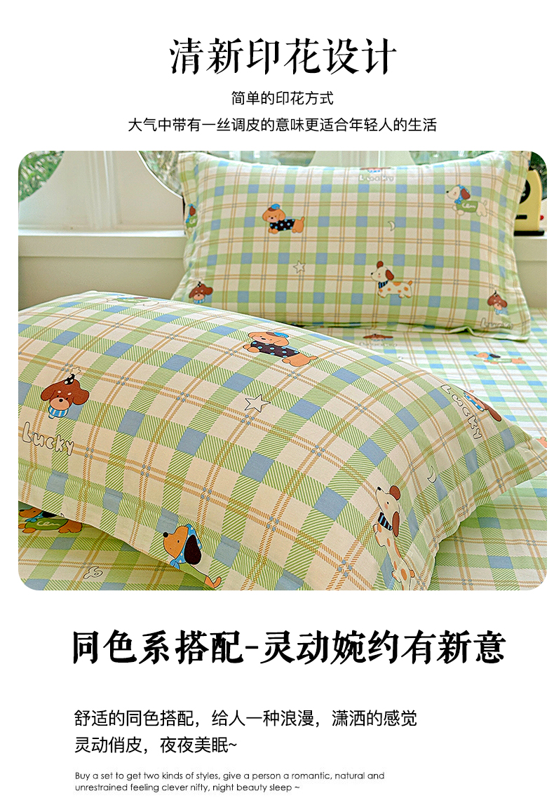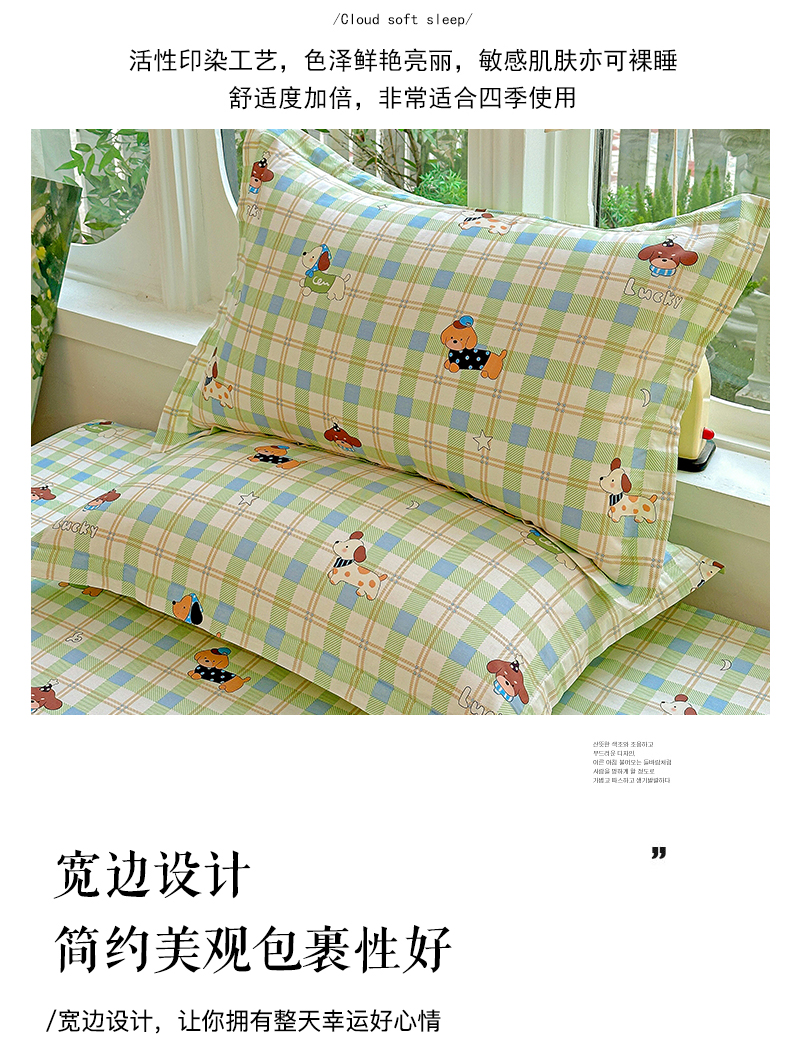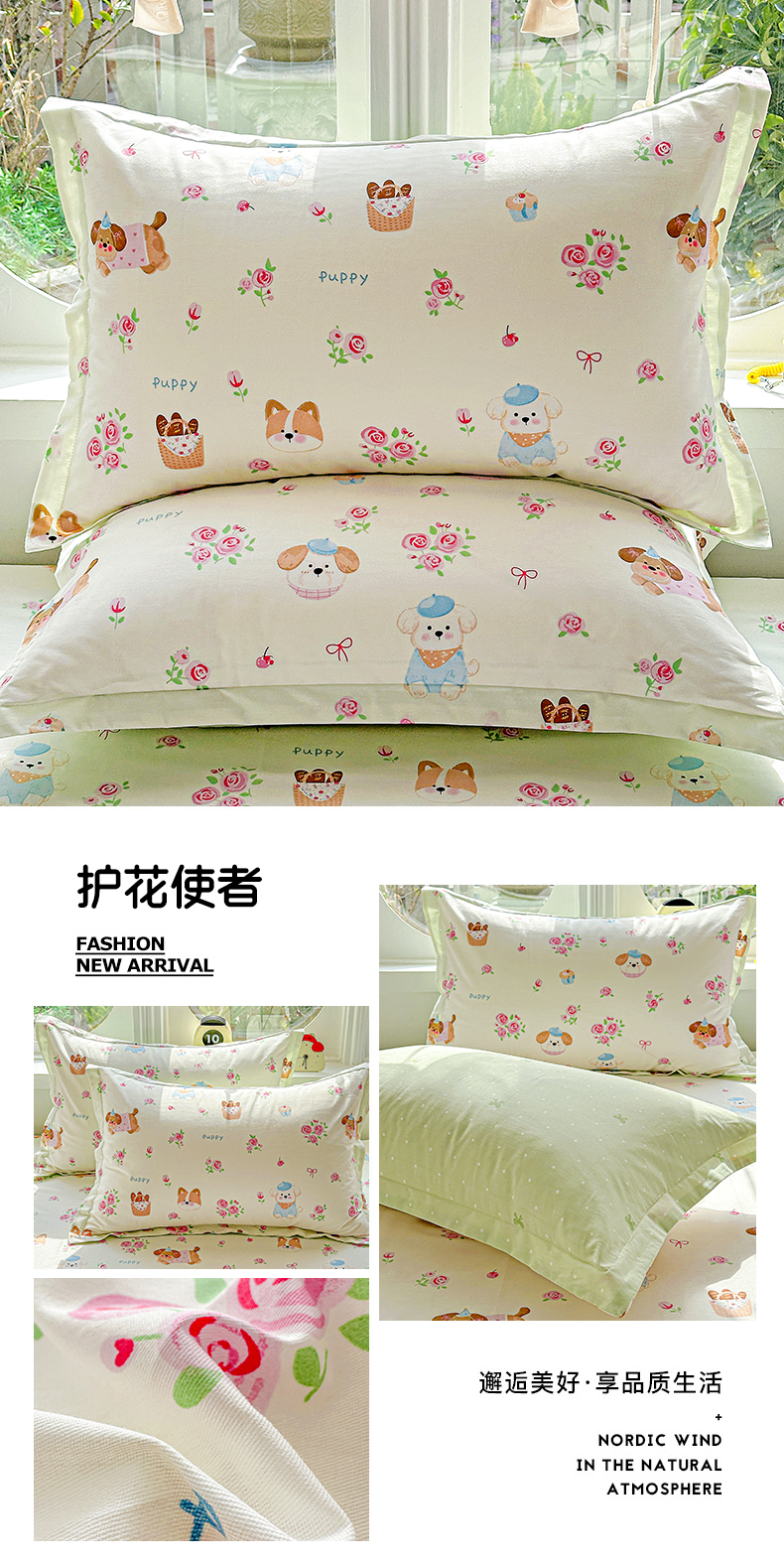商品名称:恩泽家纺 2026春夏新款全棉纯棉12868印花四件套及单品系列-单枕套枕套单件 小狗乐乐