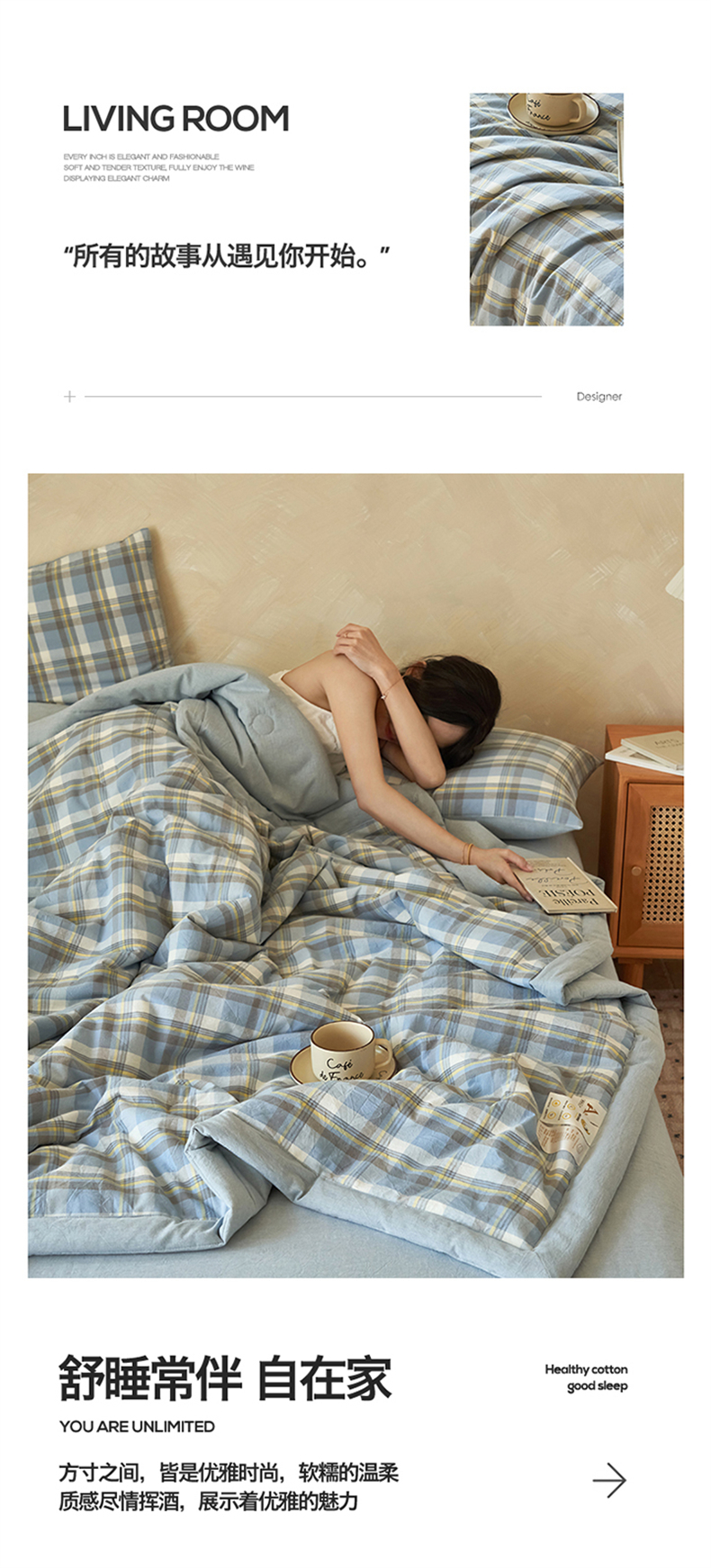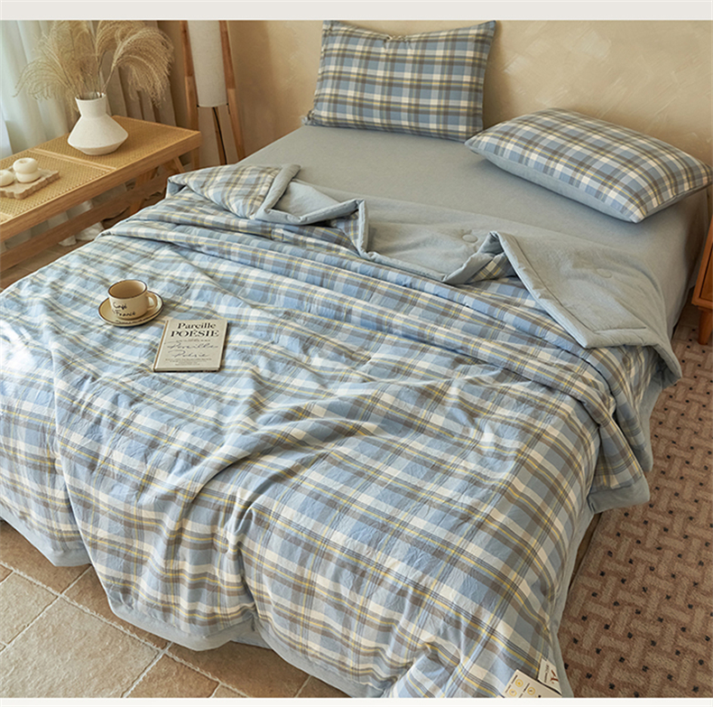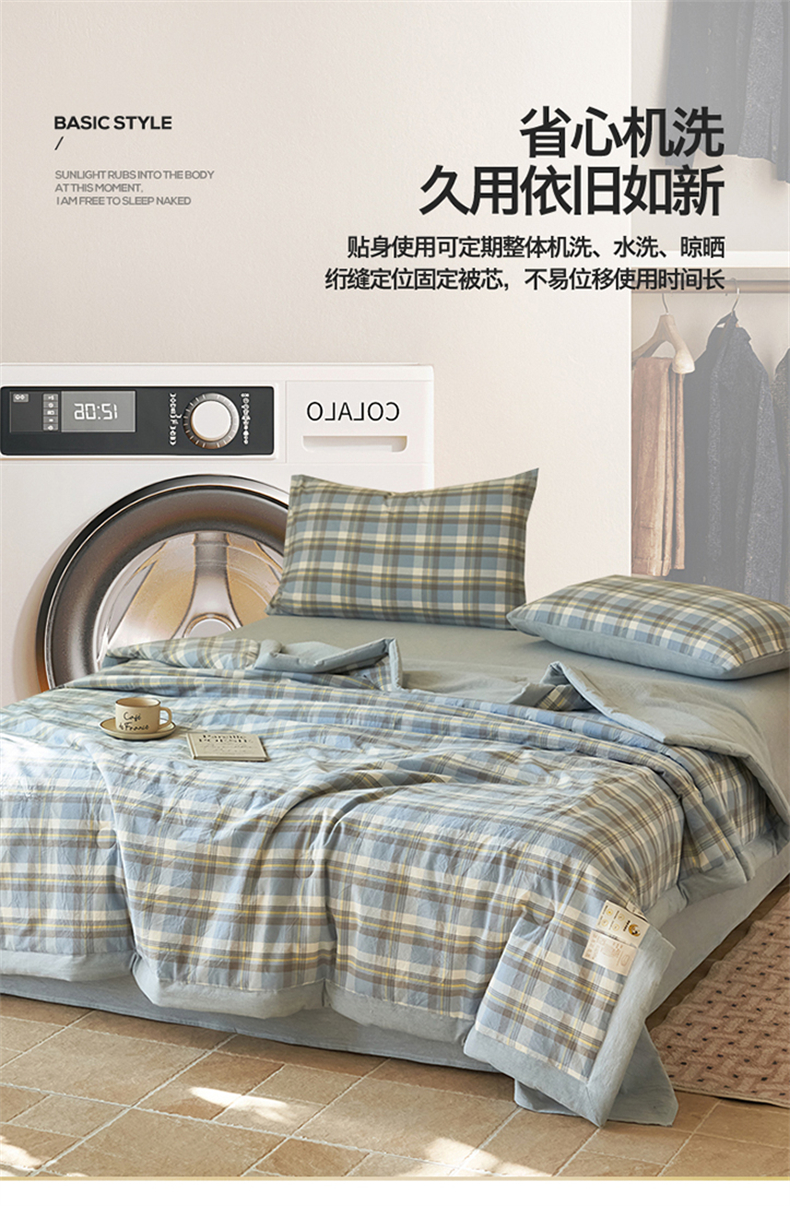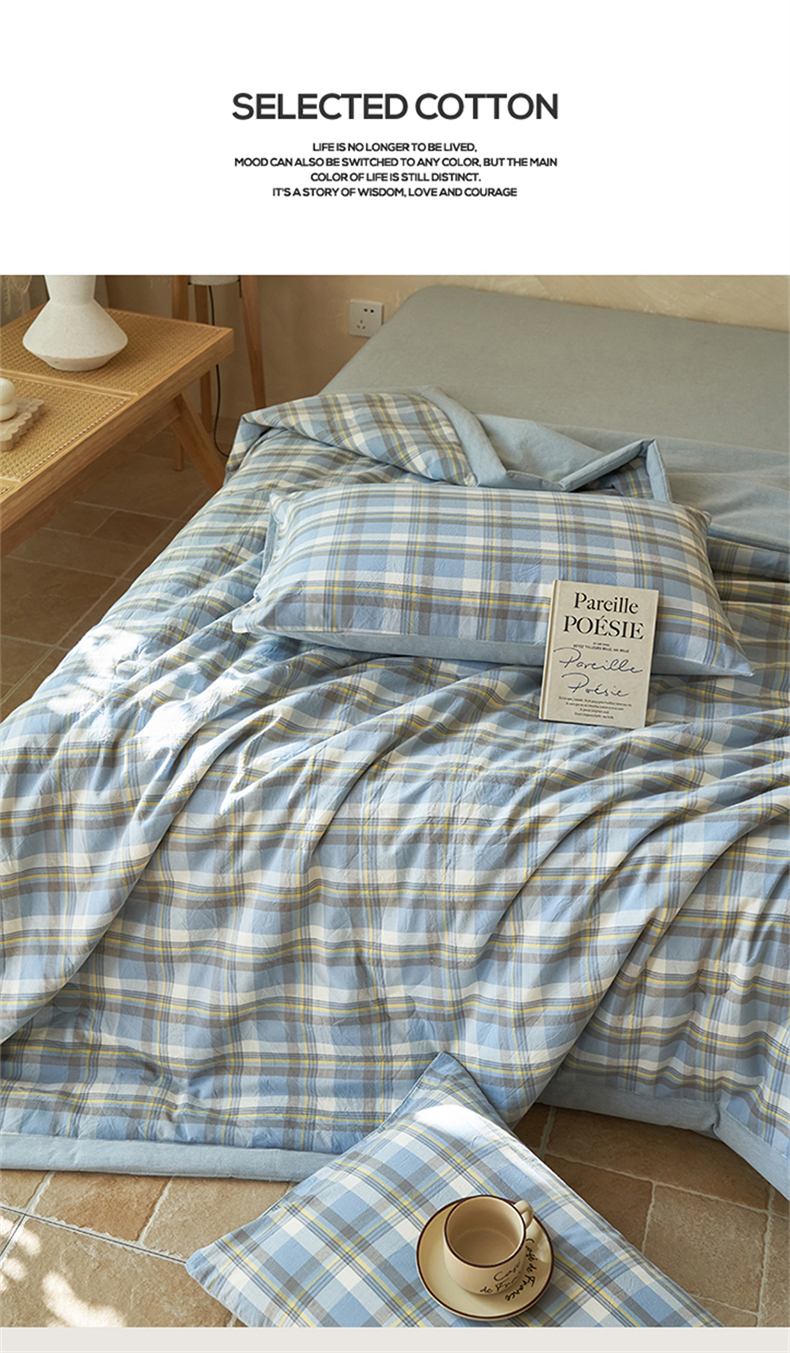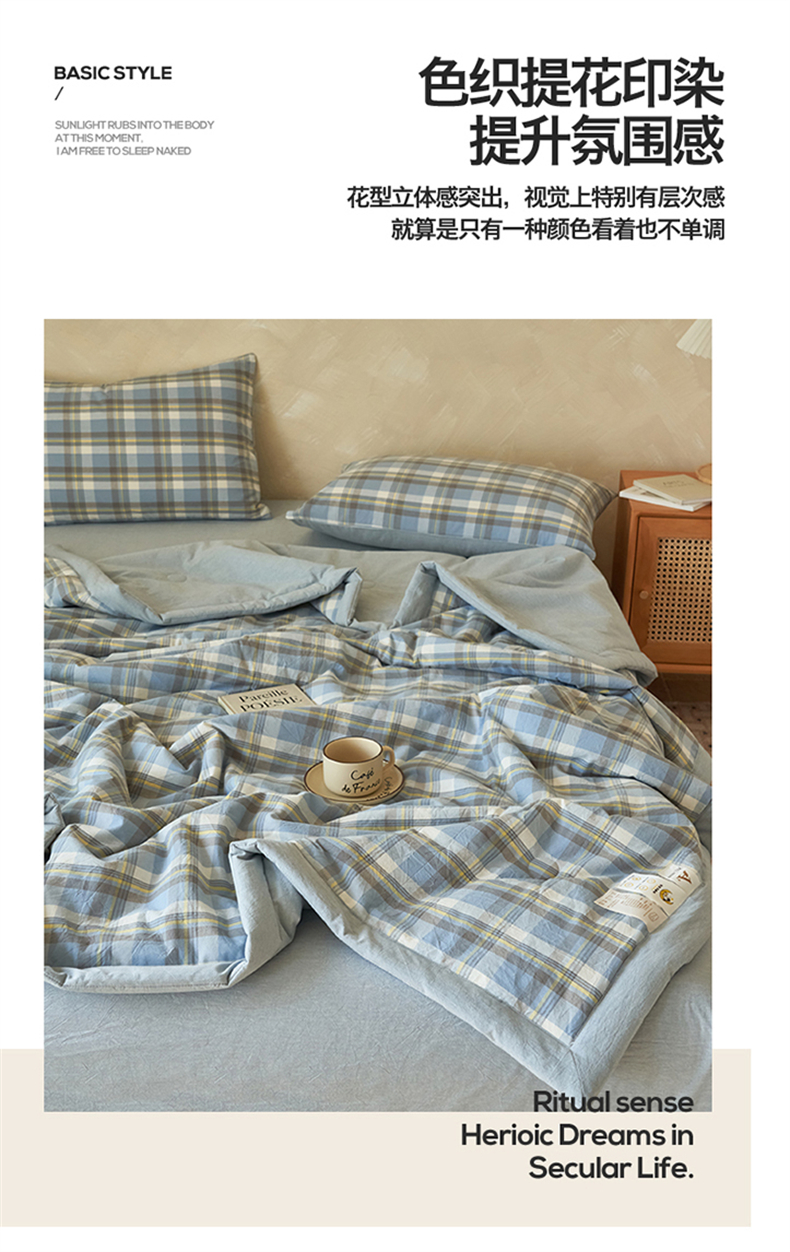 当前位置: 91家纺网 > 商品网购 > 床品套件 > 四件套 > 夏被四件套 > 恒爱家纺 2026新款A类色织全棉水洗夏被四件套 NLS莫尼-蓝