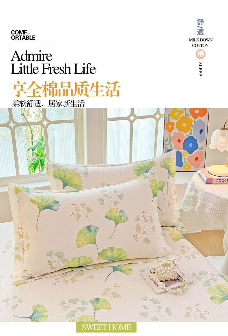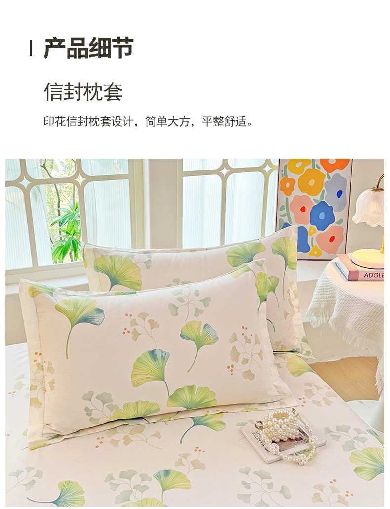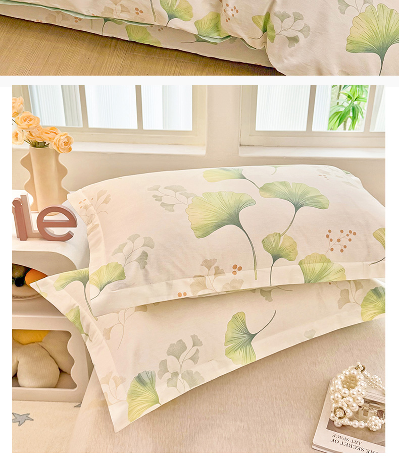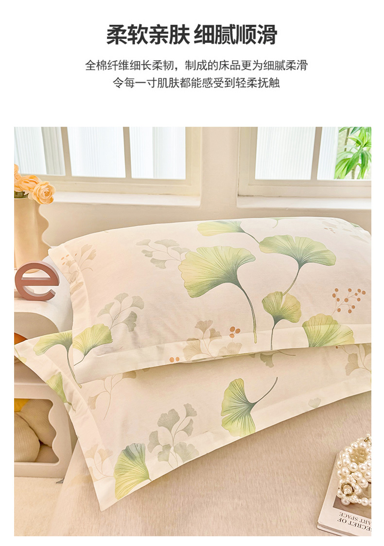 安逸家纺 2026新款全棉纯棉印花12868系列-枕套单件单枕套 青绿银杏