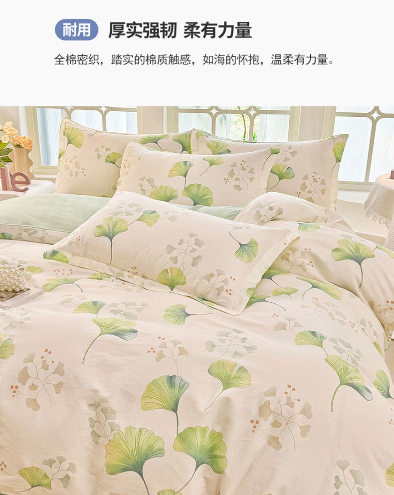 商品名称:安逸家纺 2026新款全棉纯棉印花12868系列-枕套单件单枕套 青绿银杏