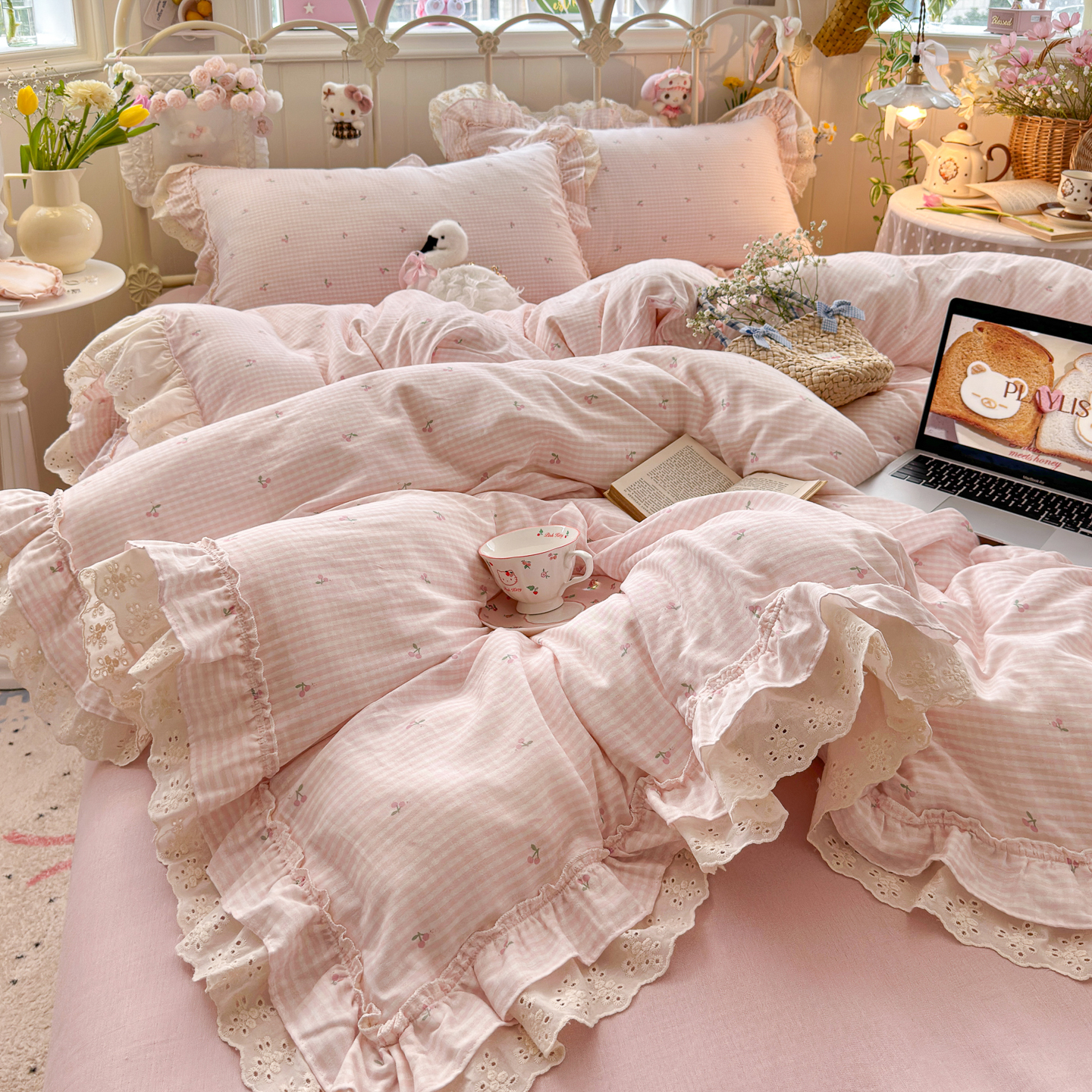 当前位置: 91家纺网 > 商品网购 > 床品套件 > 四件套 > 全棉普通四件套 > 锦彩家居 2026新款A类全棉纯棉韩式花边款小清新双层纱四件套-半糖主义系列 (提供买家秀) 软萌小兔
