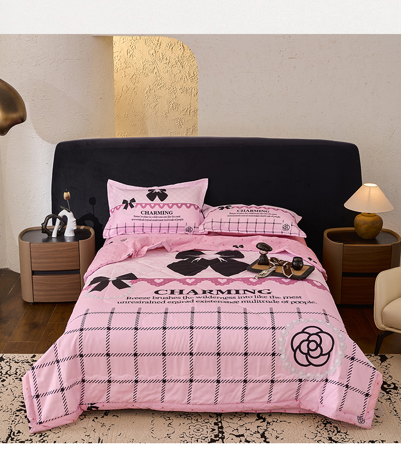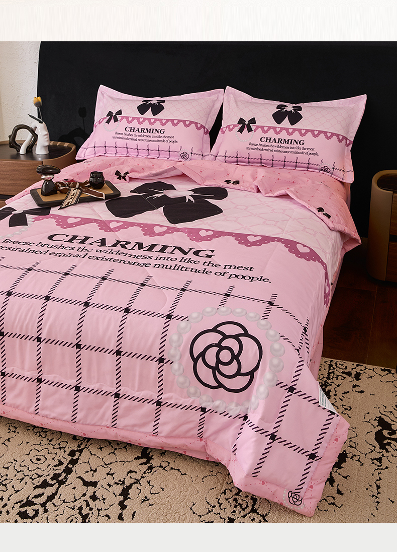 • 91家纺网 家纺一手货源 找家纺 宝薇 2026新款潮牌轻奢风大版夏被夏凉被空调被 山茶珍珠