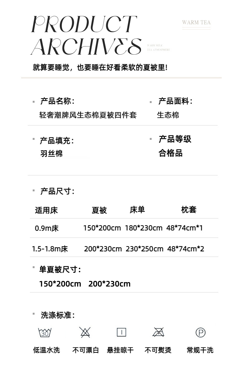 • 适用季节: 空调被/夏凉被