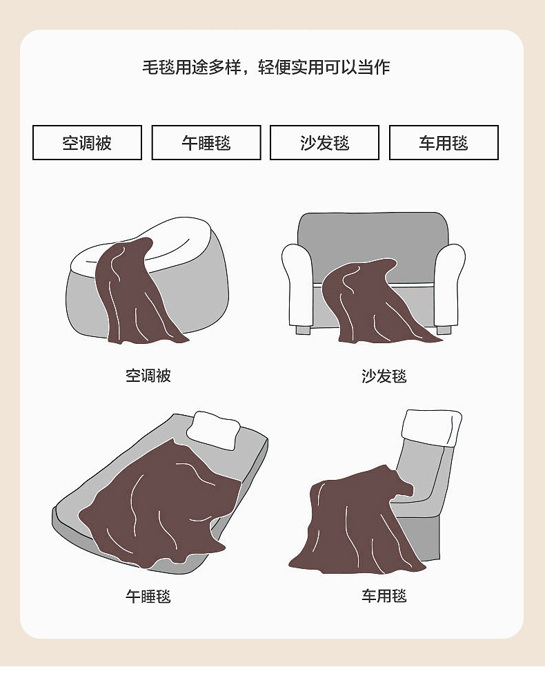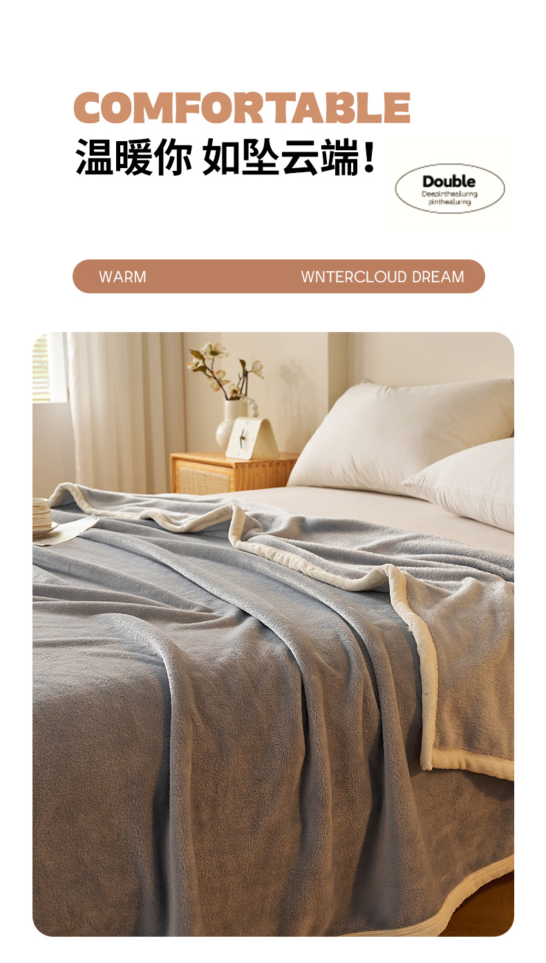(总)蓝冰家纺 2026新款加厚牛奶绒多功能毛毯,烟灰色,蓝色,蜜桃粉色