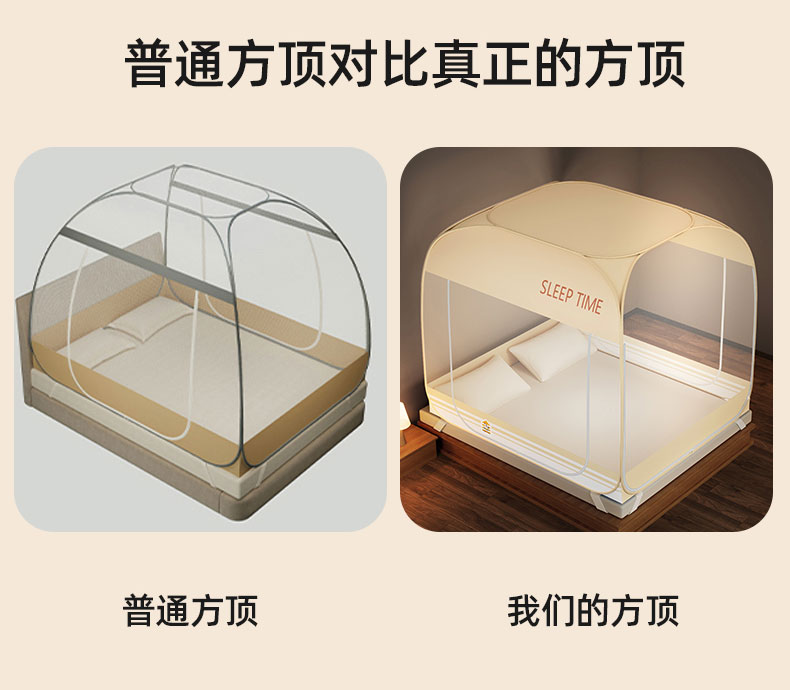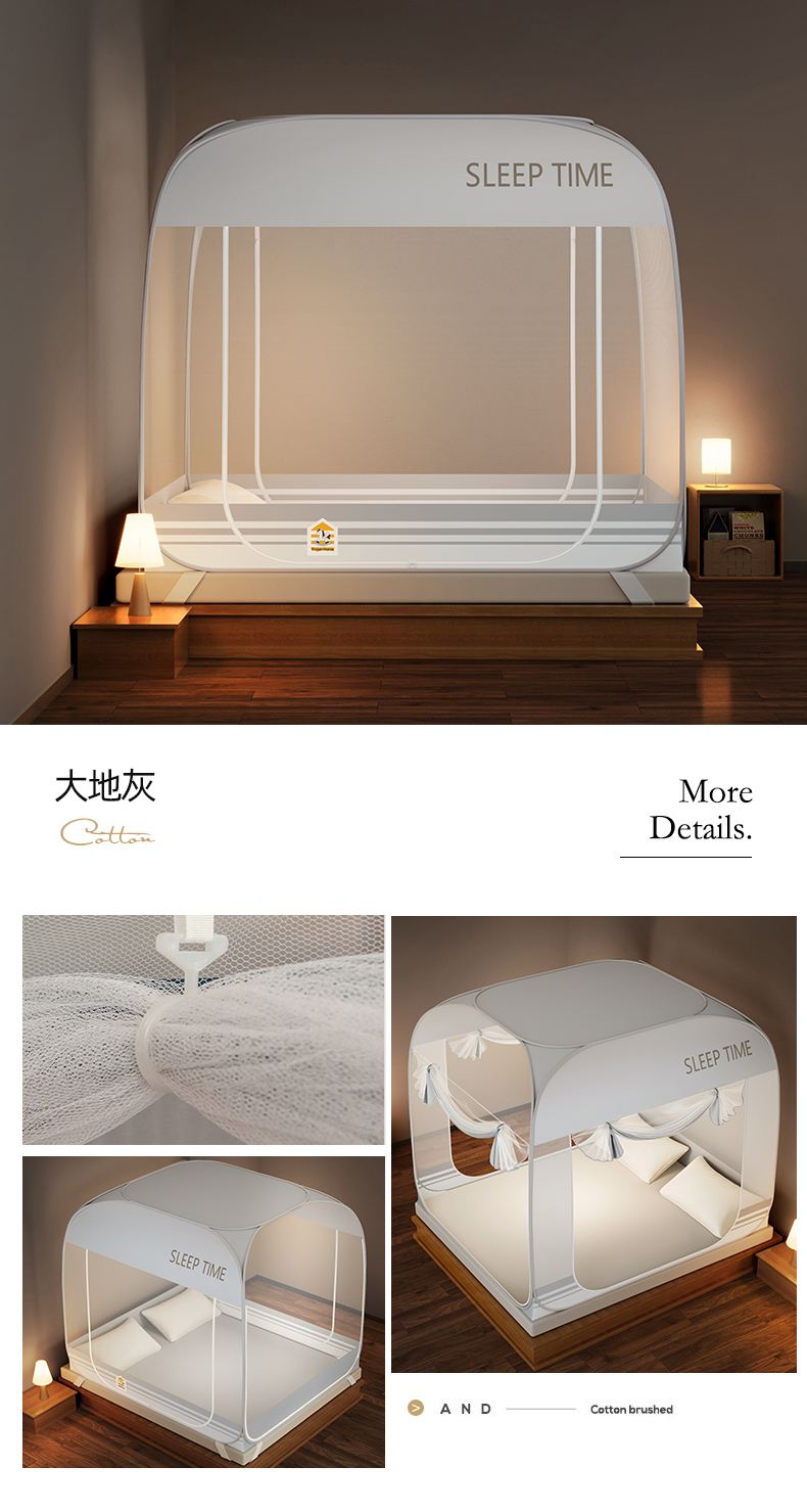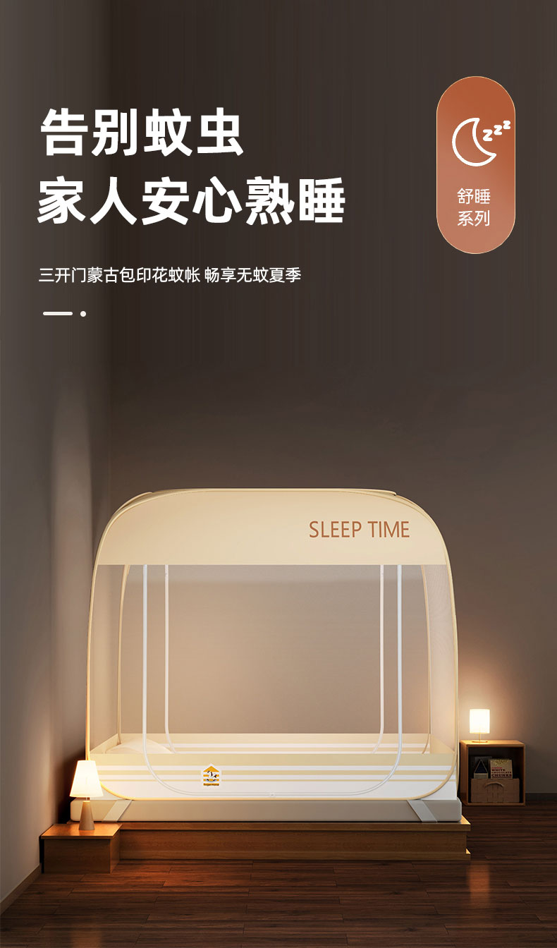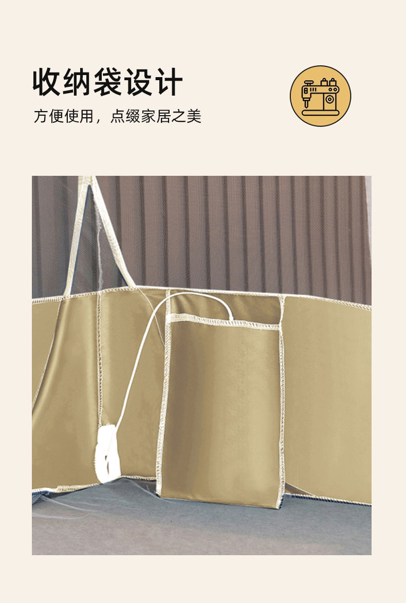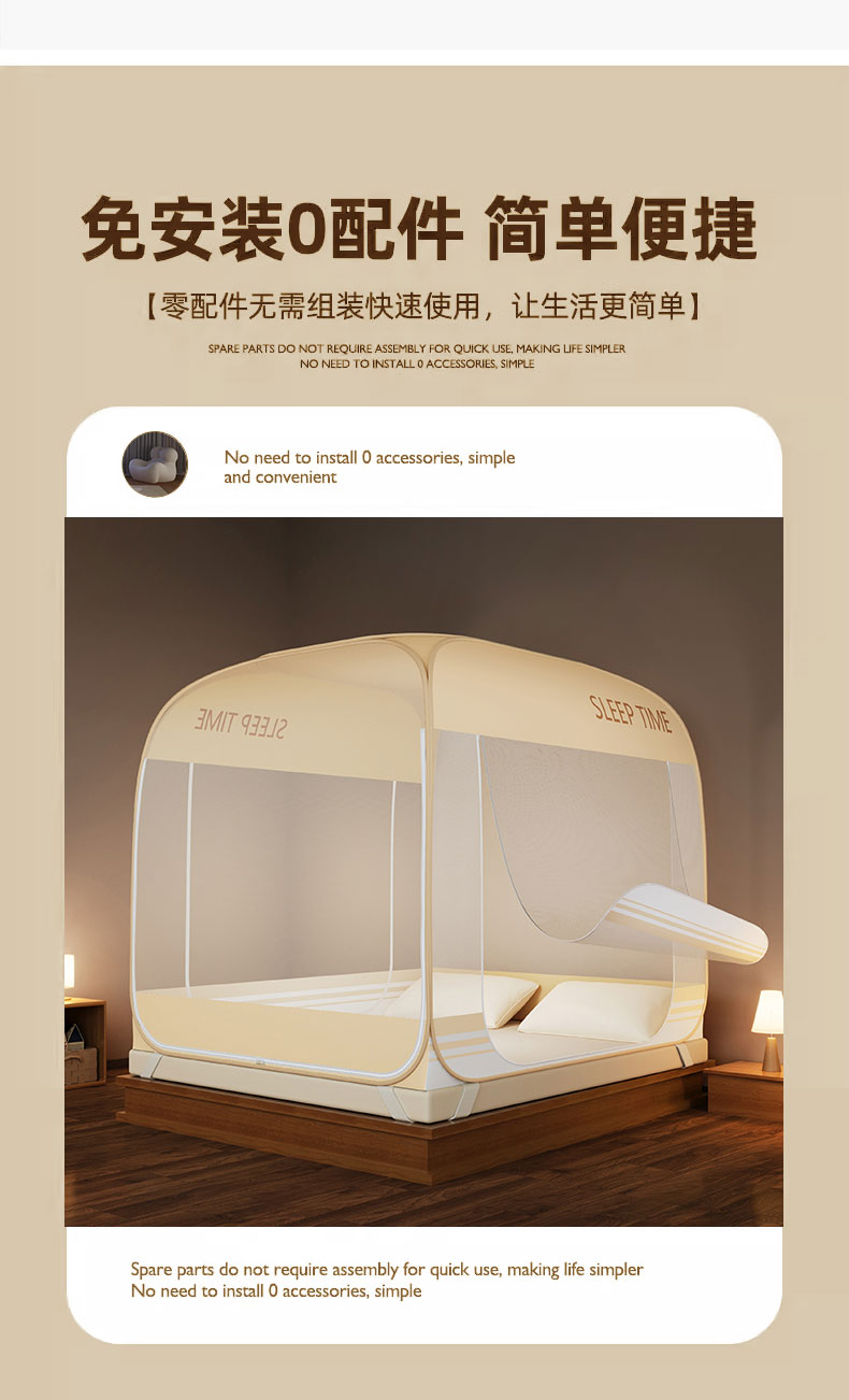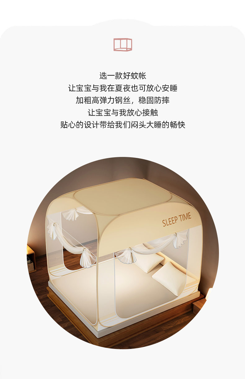 商品名称:佳梦家纺 2026新款三开门防尘顶免安装蚊帐 浅米咖