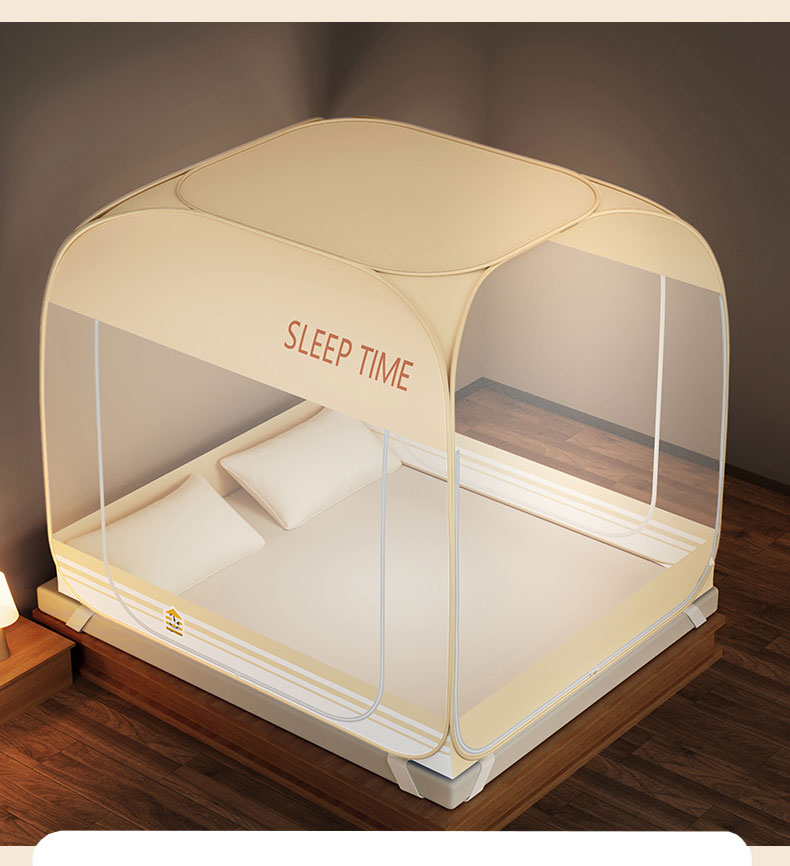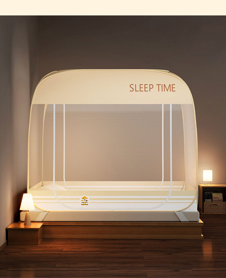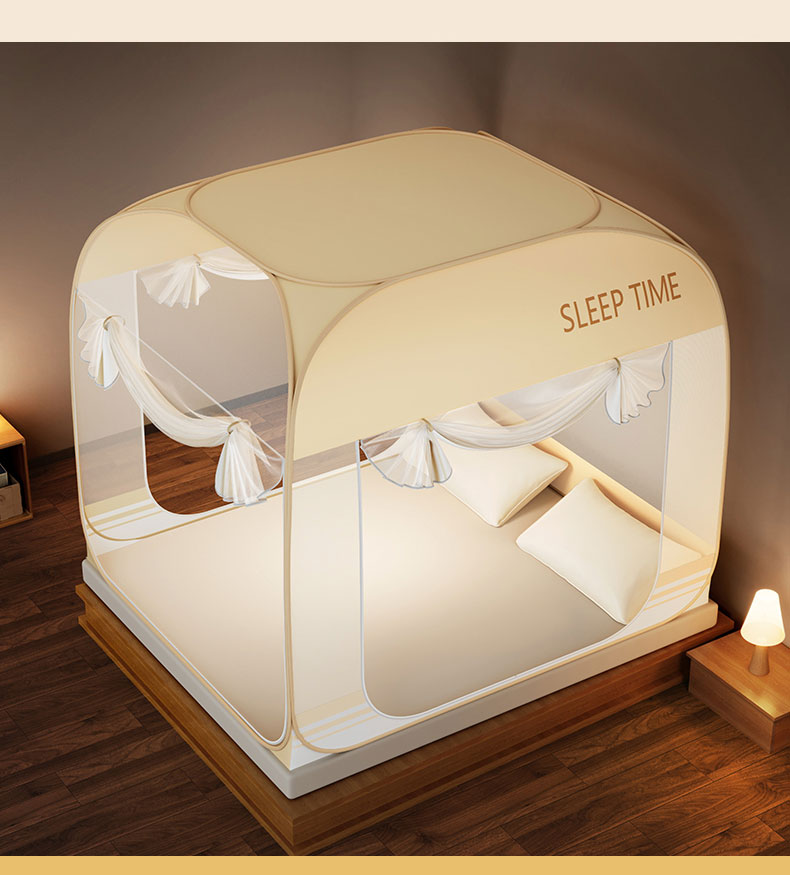 佳梦家纺 2026新款三开门防尘顶免安装蚊帐 浅米咖