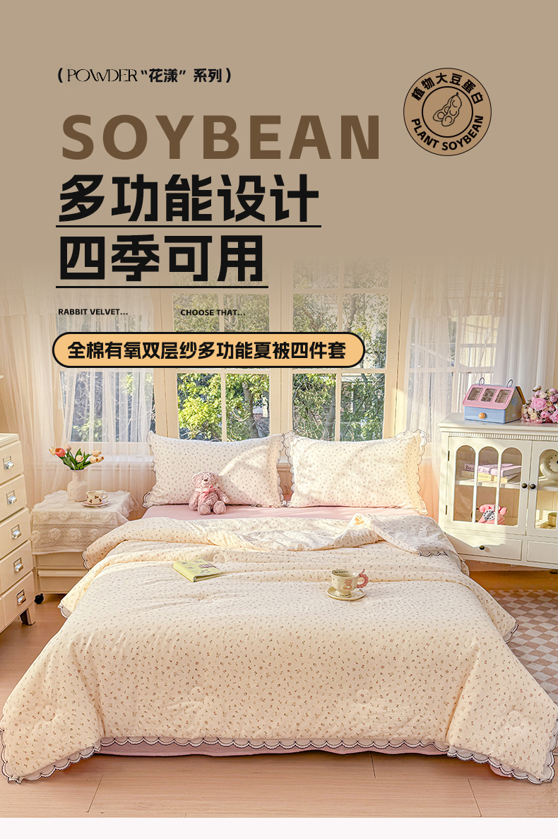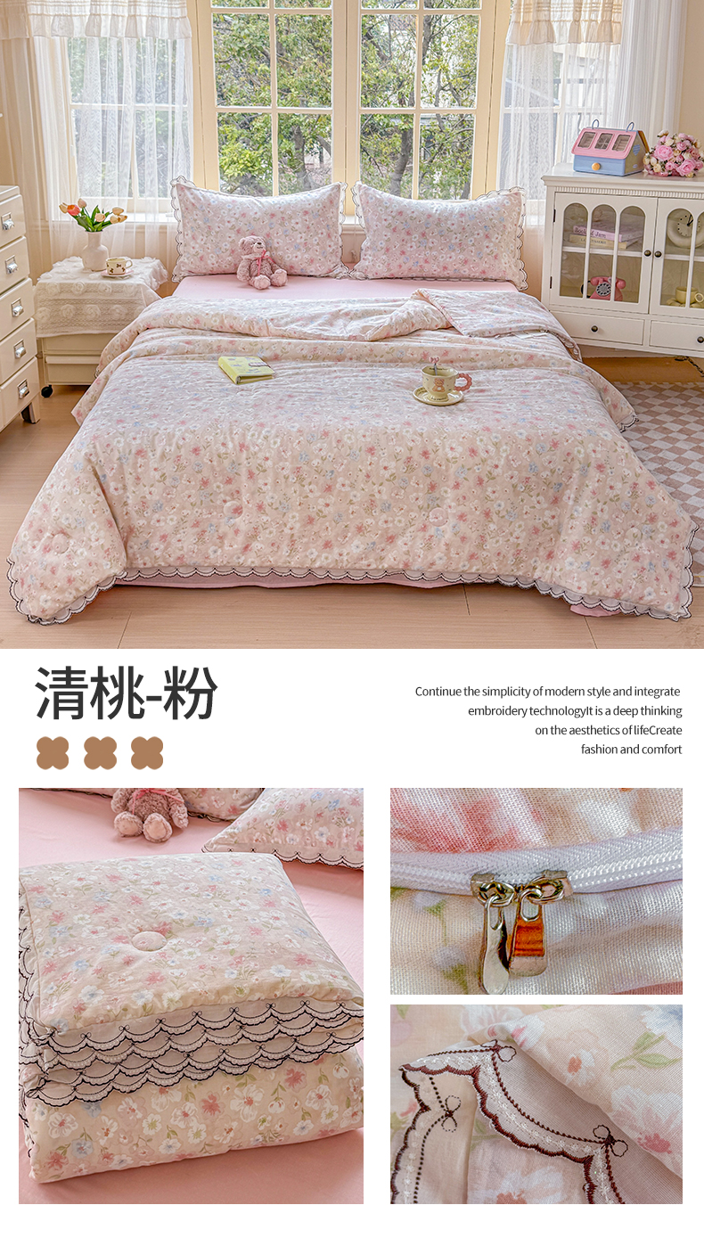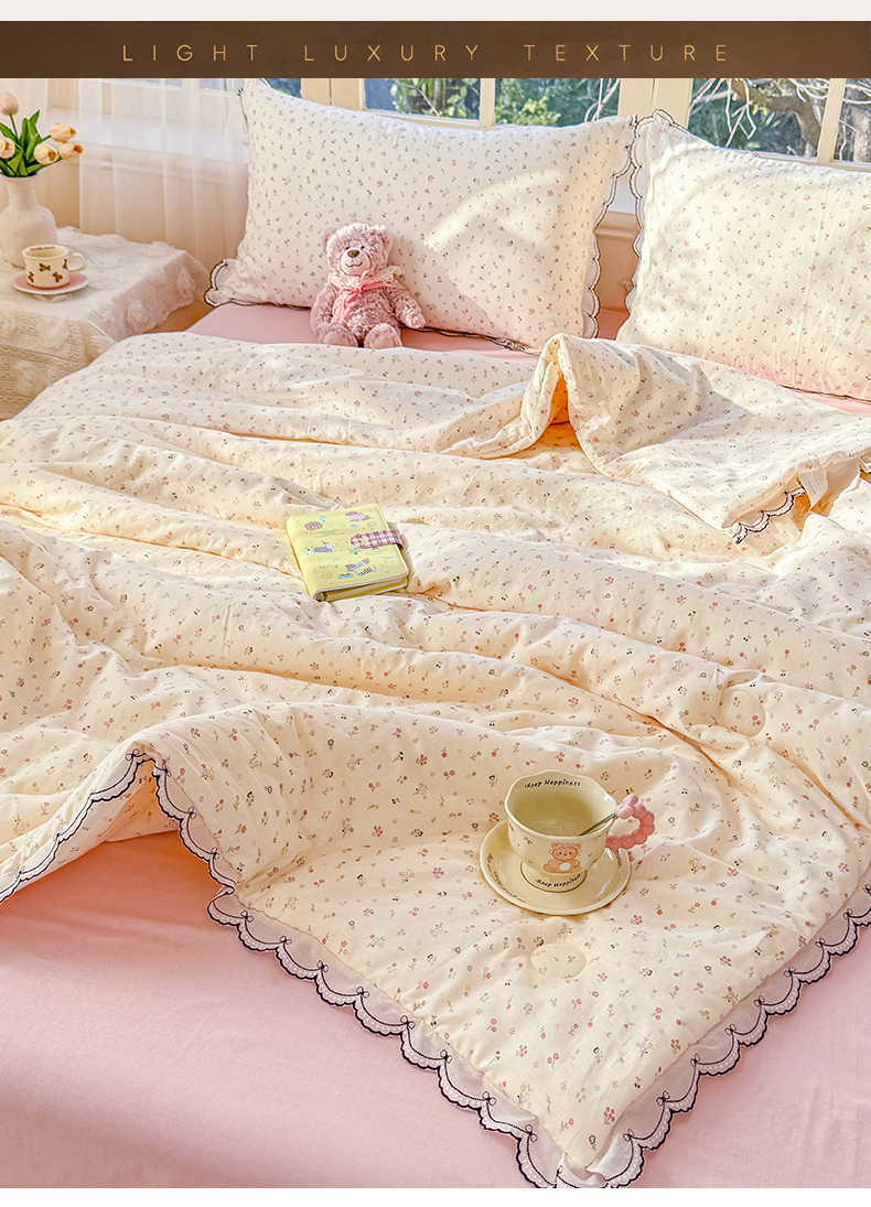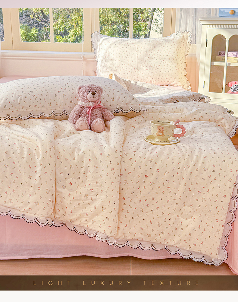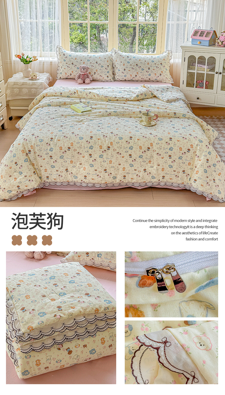(总)被窝家纺 2026新款全棉纯棉有氧双层纱多功能夏被夏凉被空调被四件套,车厘子,费尔岛小熊,蓝风铃,蓝色泡泡,绿玫瑰,萌星,柠檬花,泡芙狗,清桃-粉,小野花,樱桃甜心,紫罗兰