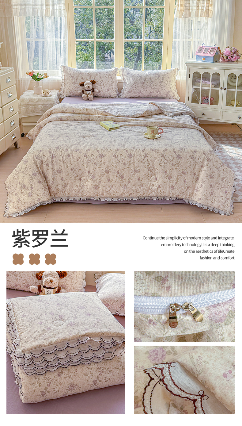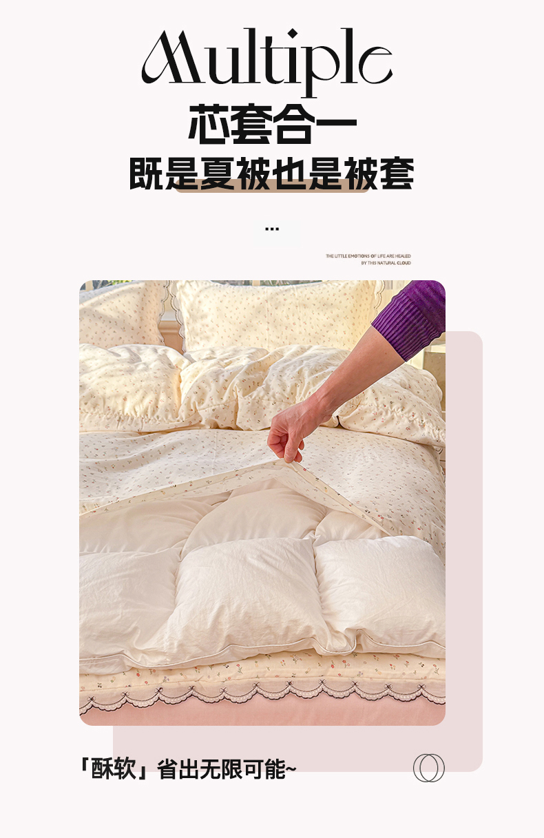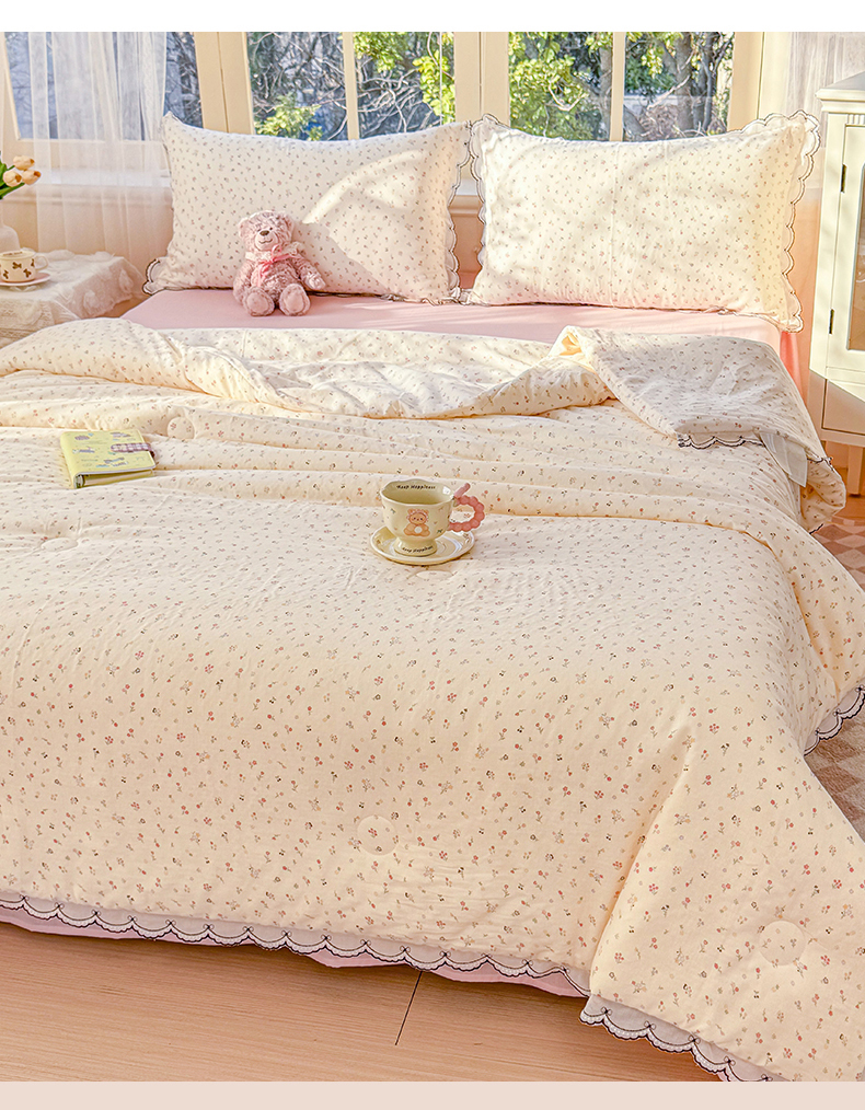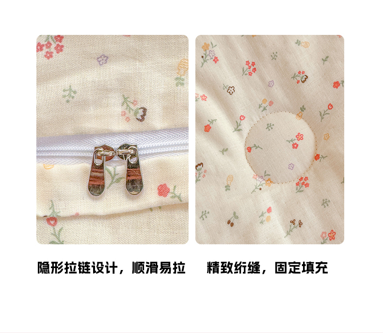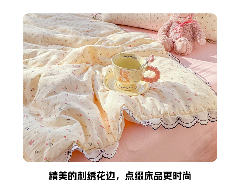 商品名称:被窝家纺 2026新款全棉纯棉有氧双层纱多功能夏被夏凉被空调被四件套 小野花