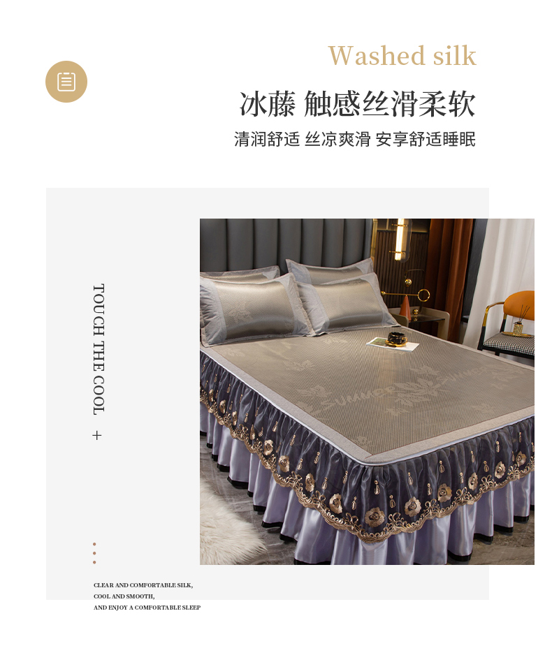 商品名称:能好家纺 2026春夏新款提花冰藤床裙款凉席席子 格调 灰