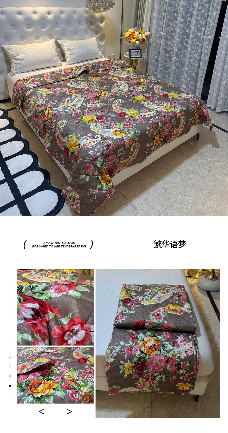 被多多被业 2026新款磨毛印花夏被夏凉被空调被 小碎花-灰