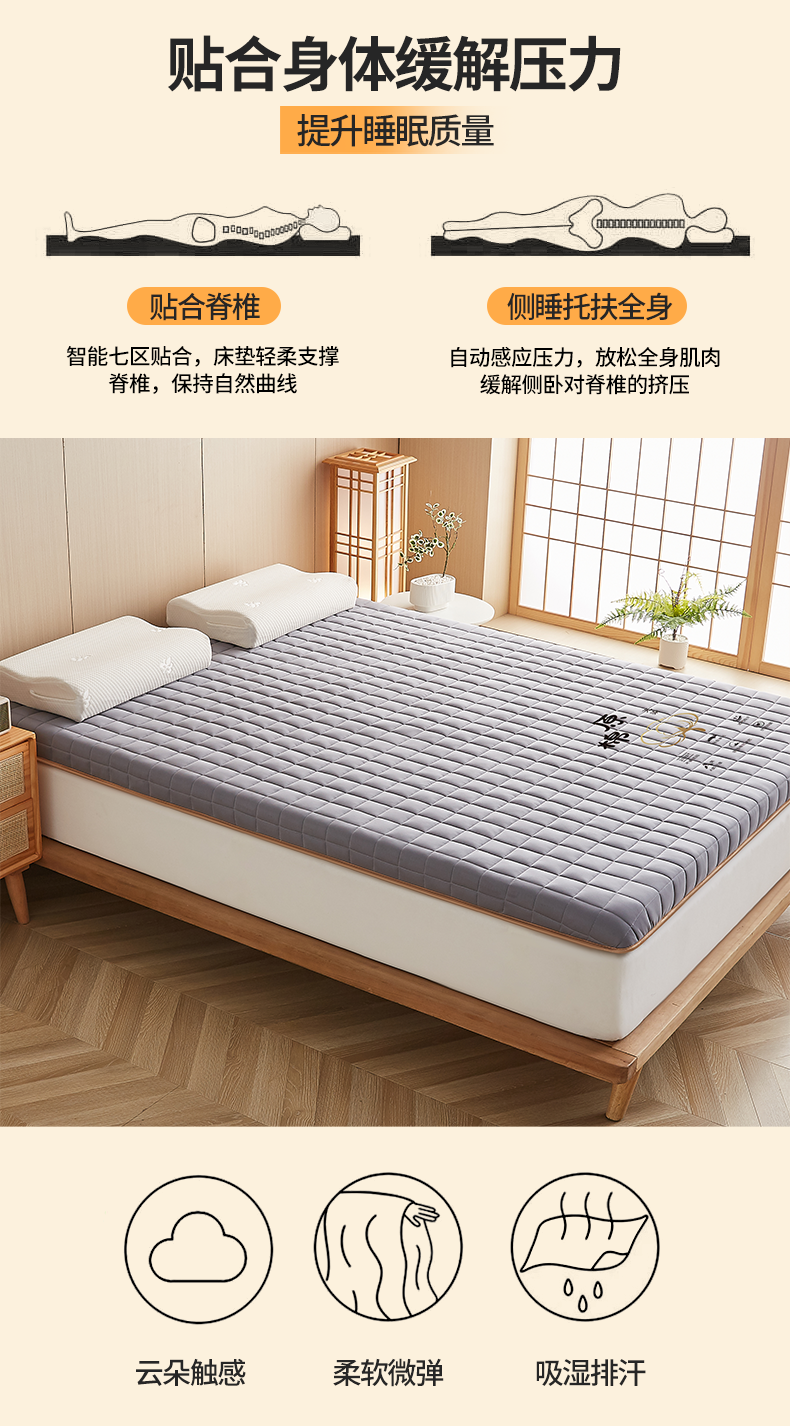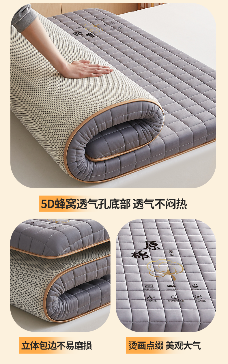 当前位置: 91家纺网 > 商品网购 > 床垫/床褥 > 普通床垫 > 月茶家纺 2026新款A类原棉新疆棉花床垫 原棉-雾霾灰