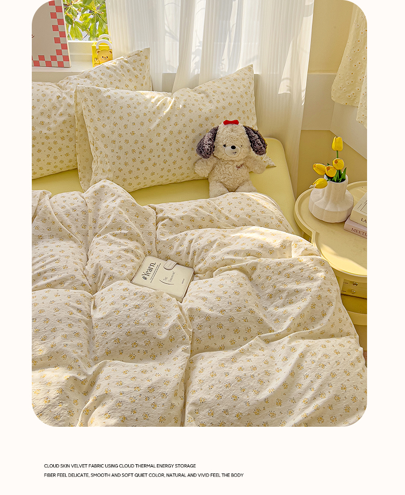 当前位置: 91家纺网 > 商品网购 > 床品套件 > 四件套 > 双层纱四件套 > 优选 2026新款加厚云感棉双层纱四件套小碎花被套床单床笠款学生三件套新款直播爆款 橘子海
