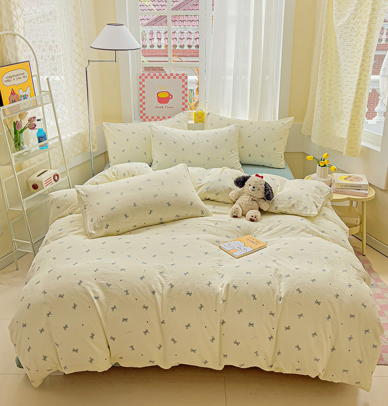 当前位置: 91家纺网 > 商品网购 > 床品套件 > 四件套 > 双层纱四件套 > 优选 2026新款加厚云感棉双层纱四件套小碎花被套床单床笠款学生三件套新款直播爆款 相思-蓝