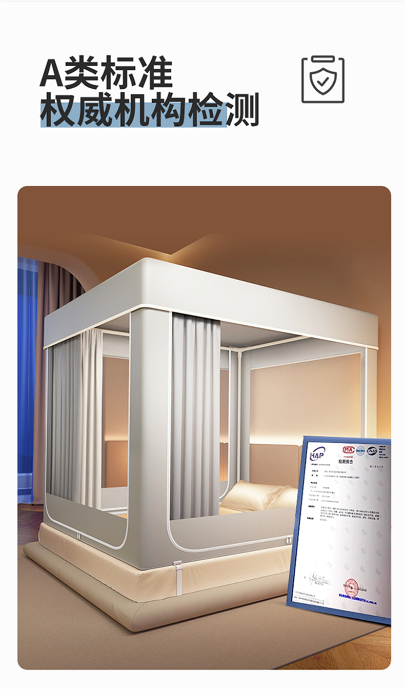 当前位置: 91家纺网 > 商品网购 > 床上用品 > 蚊帐 > 坐床式蚊帐 > 佳梦家纺 2026春夏新款护栏级防摔坐床蚊帐永夜系列 永夜灰-防尘款三门半底