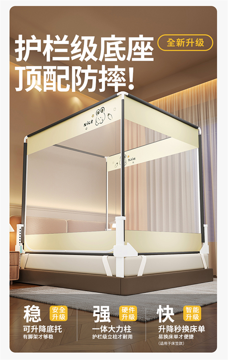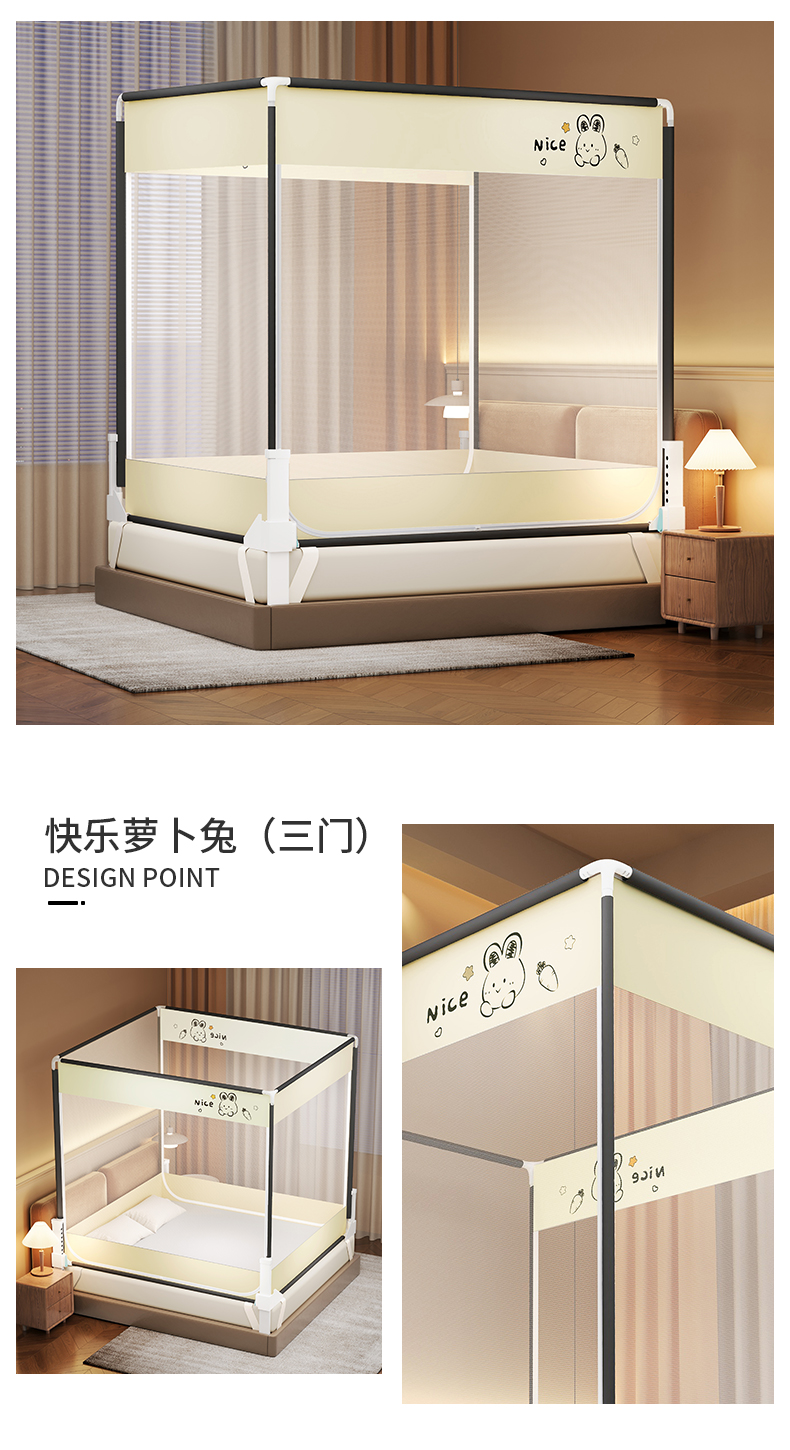 当前位置: 91家纺网 > 商品网购 > 床上用品 > 蚊帐 > 坐床式蚊帐 > 佳梦家纺 2026春夏新款护栏级防摔坐床蚊帐小卡通系列 快乐萝卜兔三门全底款