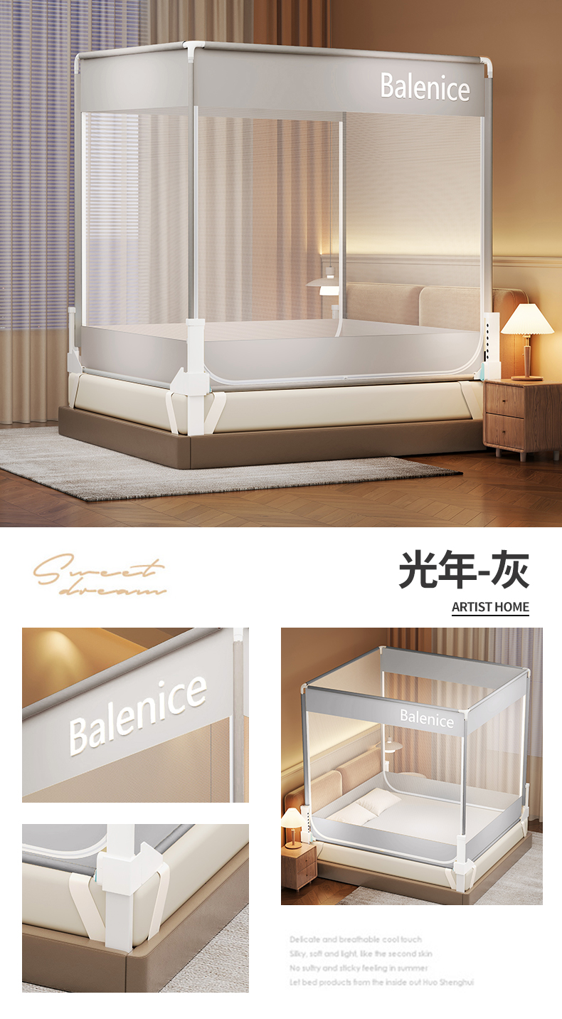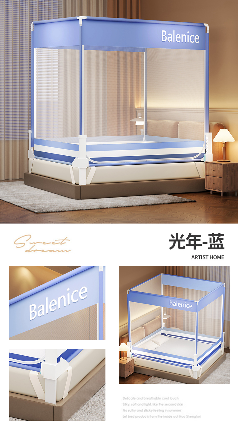 当前位置: 91家纺网 > 商品网购 > 床上用品 > 蚊帐 > 坐床式蚊帐 > 佳梦家纺 2026春夏新款护栏级防摔坐床蚊帐光年系列 光年-粉-三门全底款