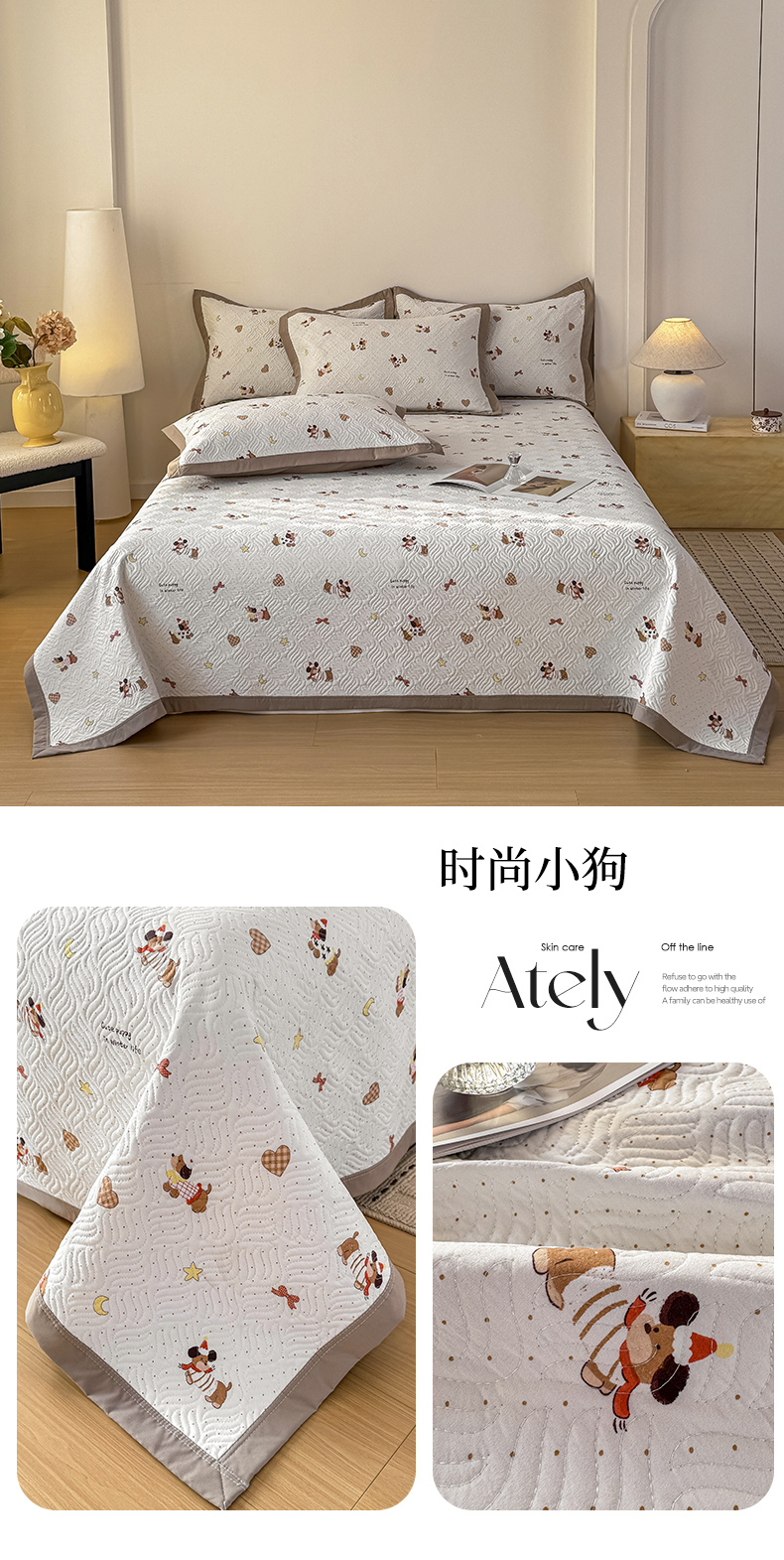 优贝家纺 2026春夏新款水洗棉小清新印花夹棉多功能床盖三件套 时尚小狗