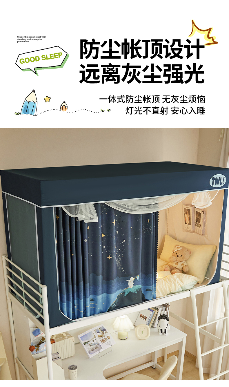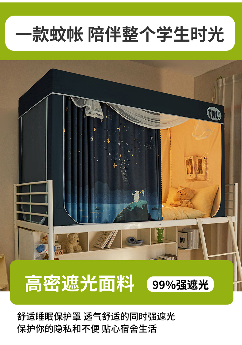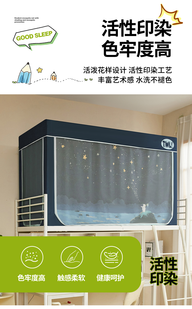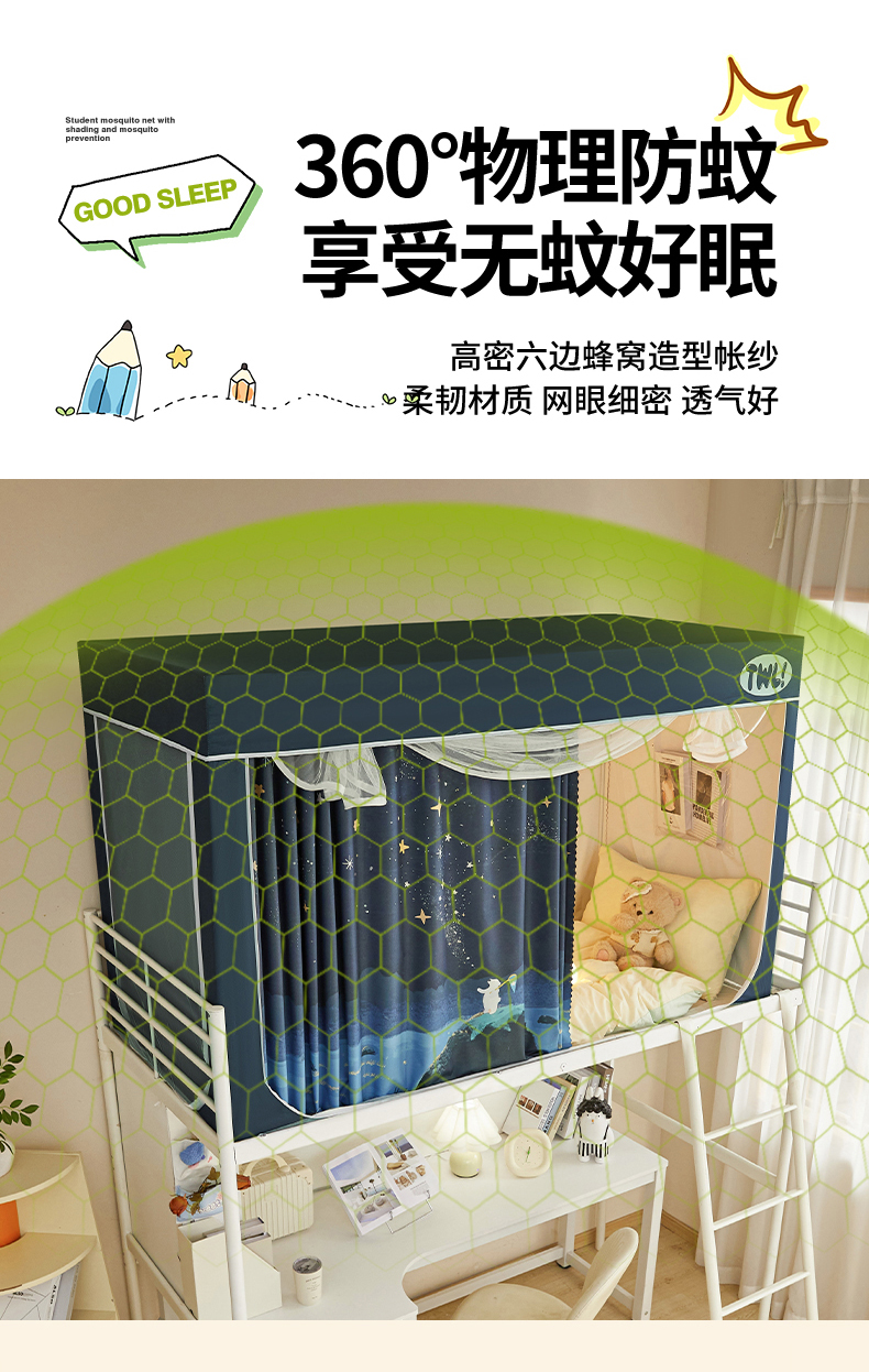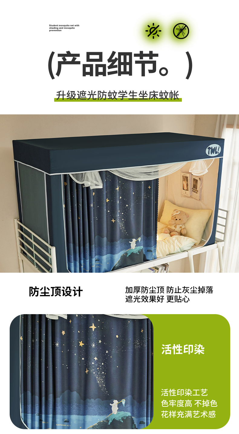 商品名称:(总)学生全遮光印花款宿舍上下铺通用拉链卡通清新防蚊单人床可伸缩遮光