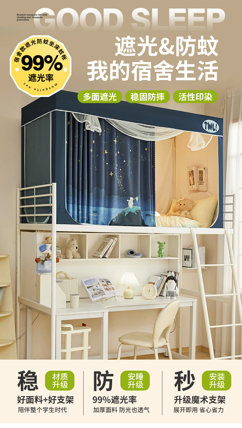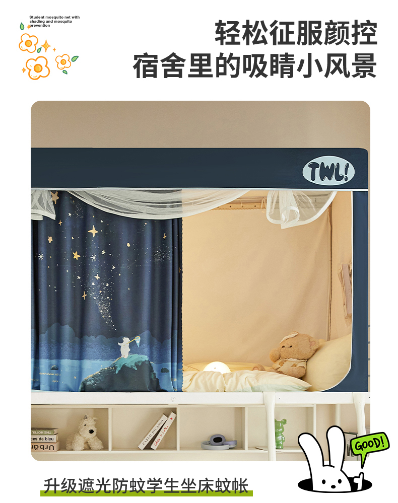 (总)2025新款升级静电非涂层环保全遮光床帘款学生上下铺蚊帐宿舍单人床通用印花,杯子里的猫,布露露,草莓兔兔,花朵喵喵,看书狗狗,萌宠出道,睡觉狗狗,童话园,小浣熊,小兔兔,纯藏青,纯米色,纯粉色,纯绿色,纯天蓝
