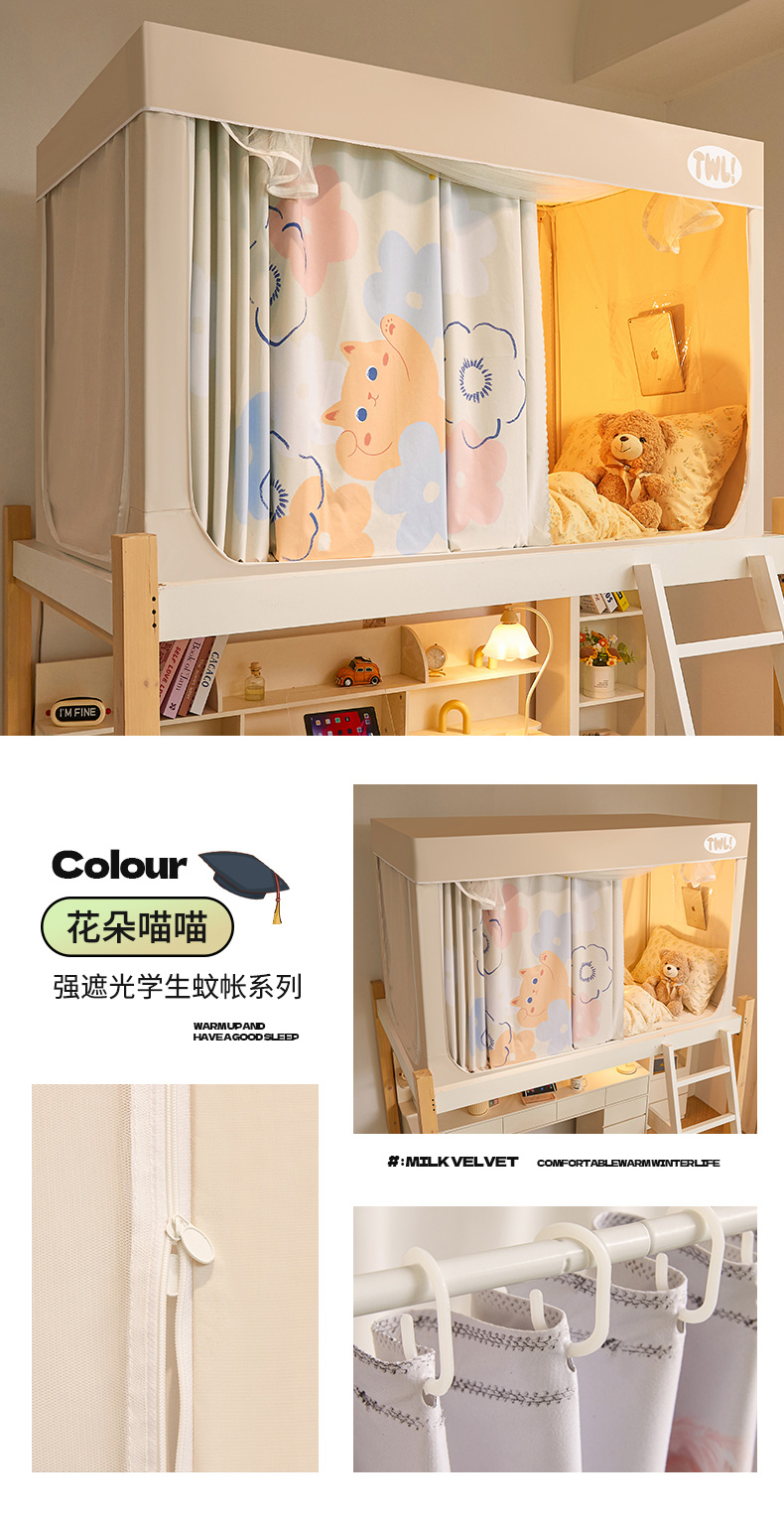 (总)2025新款升级静电非涂层环保全遮光床帘款学生上下铺蚊帐宿舍单人床通用印花,看书狗狗,杯子里的猫,小浣熊,睡觉狗狗,布露露,草莓兔兔,花朵喵喵,萌宠出道,童话园,小兔兔,藏青,粉色,天蓝,绿色,米色,沙发上的熊(植绒),睡觉熊熊(植绒),豚宝宝(植绒),狗狗乐园(植绒),伙伴聚会(植绒),猫猫们(植绒),猫猫派对(植绒),森林里的小熊(植绒),要快乐呀(植绒),慵懒小象(植绒),田野里的兔兔(植绒)
