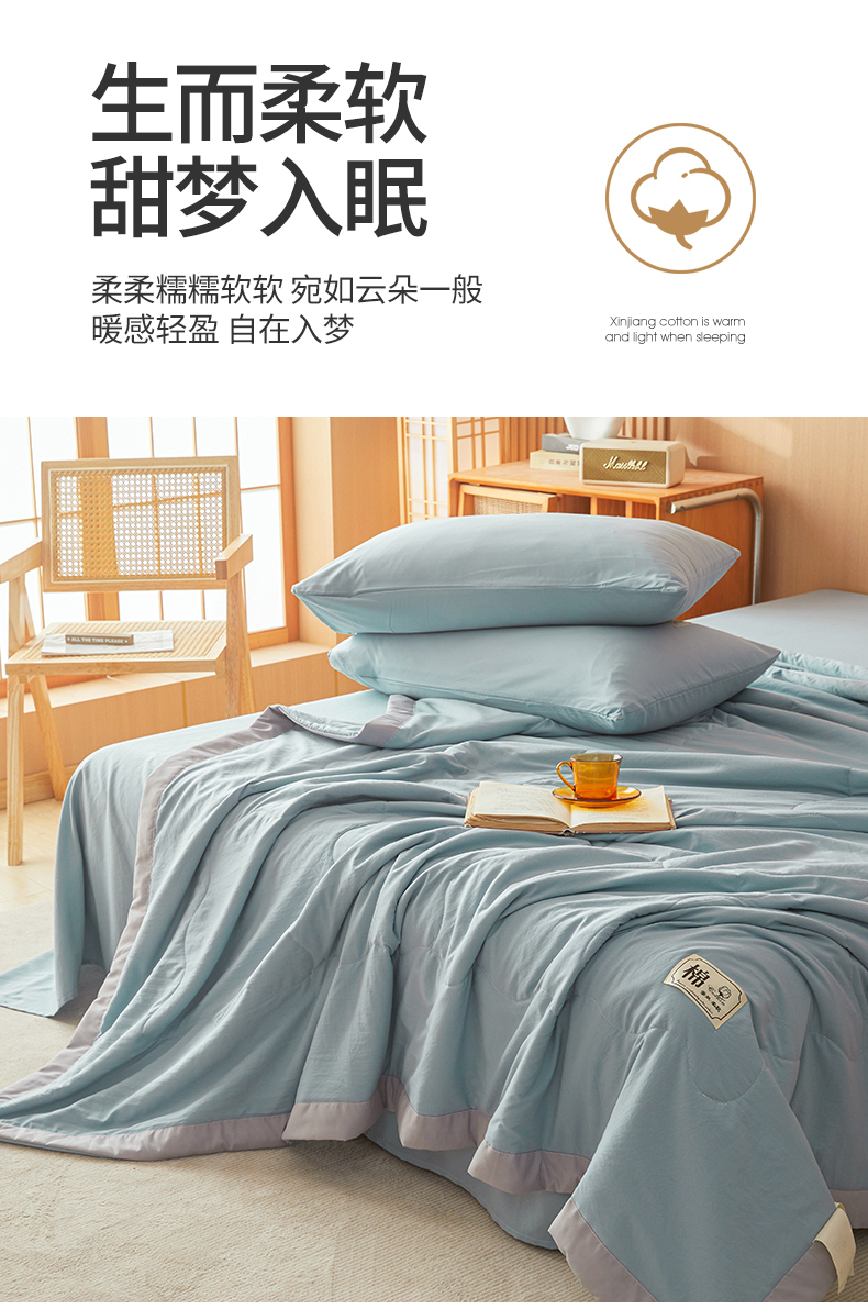 • 91家纺网 家纺一手货源 找家纺 招财星 2026新款国标无印风纯色100%新疆棉夏被夏凉被空调被棉花夏被棉花被子被芯爆款(含质检报告买家秀包检测) 清新蓝