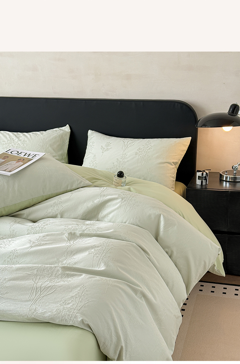 雅萱家纺 2026新款60支提花全棉四件套 春草粉