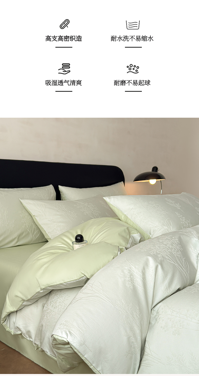 (总)雅萱家纺 2026新款60支提花全棉四件套,春草粉,春草绿,繁花绿,花影粉,肌理灰,流星米,流星紫