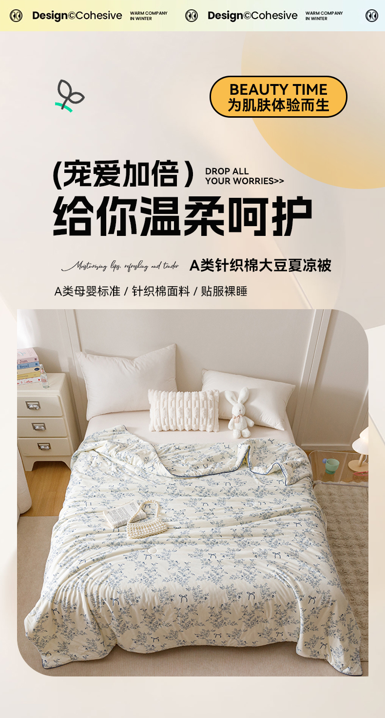优被业 2026新款A类牛奶丝针织棉软糯凉感大豆夏被空调被夏凉被(20%大豆国标包检测) 繁花