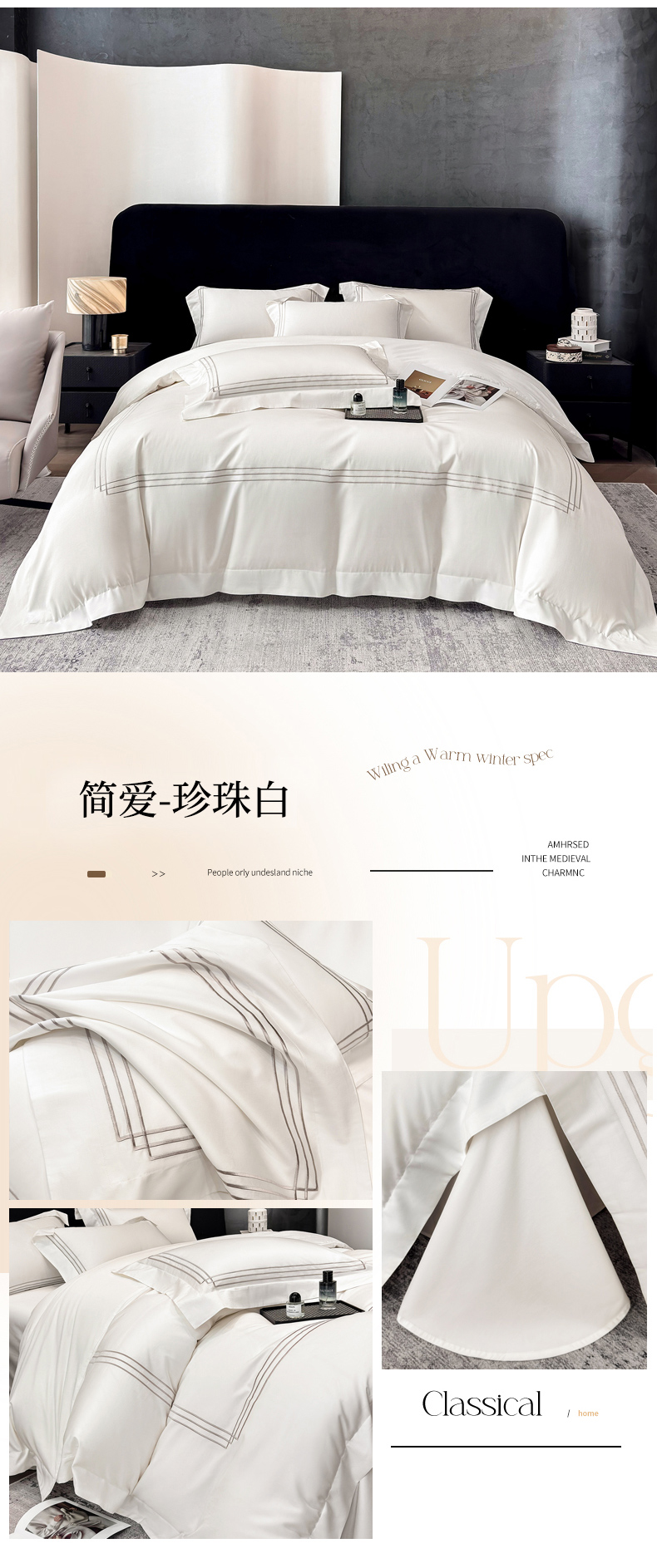 (总)星蕴家纺 2026新款双股长绒棉全棉纯棉刺绣四件套-柏林系列,柏林 贵族白,柏林 星空灰,柏林 云山蓝,柏林 香槟金,柏林 可可粉