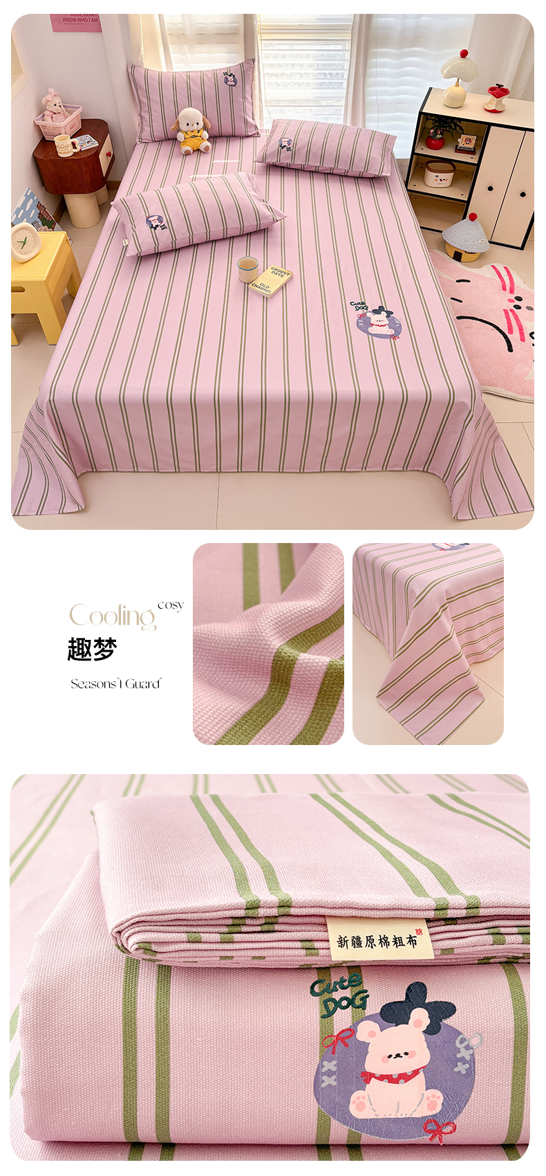 (总)卧趣家纺 2026新款全棉老粗布凉席席子床单单件单品床单单床单绒布贴系列,叠叠乐,口袋萌宠,莓果熊,萌星,泡芙奶盖,趣梦,甜梦兔,汪汪奶盖,小迎象,心动汪,摇摇马,组合图仅供展示不可下单