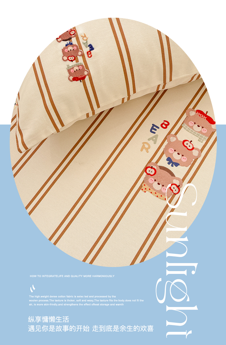 (总)卧趣家纺 2026新款A类100Pro贡缎全棉纯棉卡通毛巾绣四件套-场景一,波点维尼,七彩小熊,曲奇小熊,甜心萌萌,条纹俏皮狗,小星星