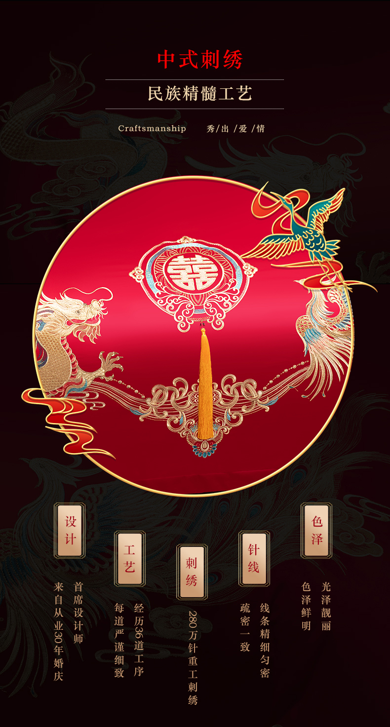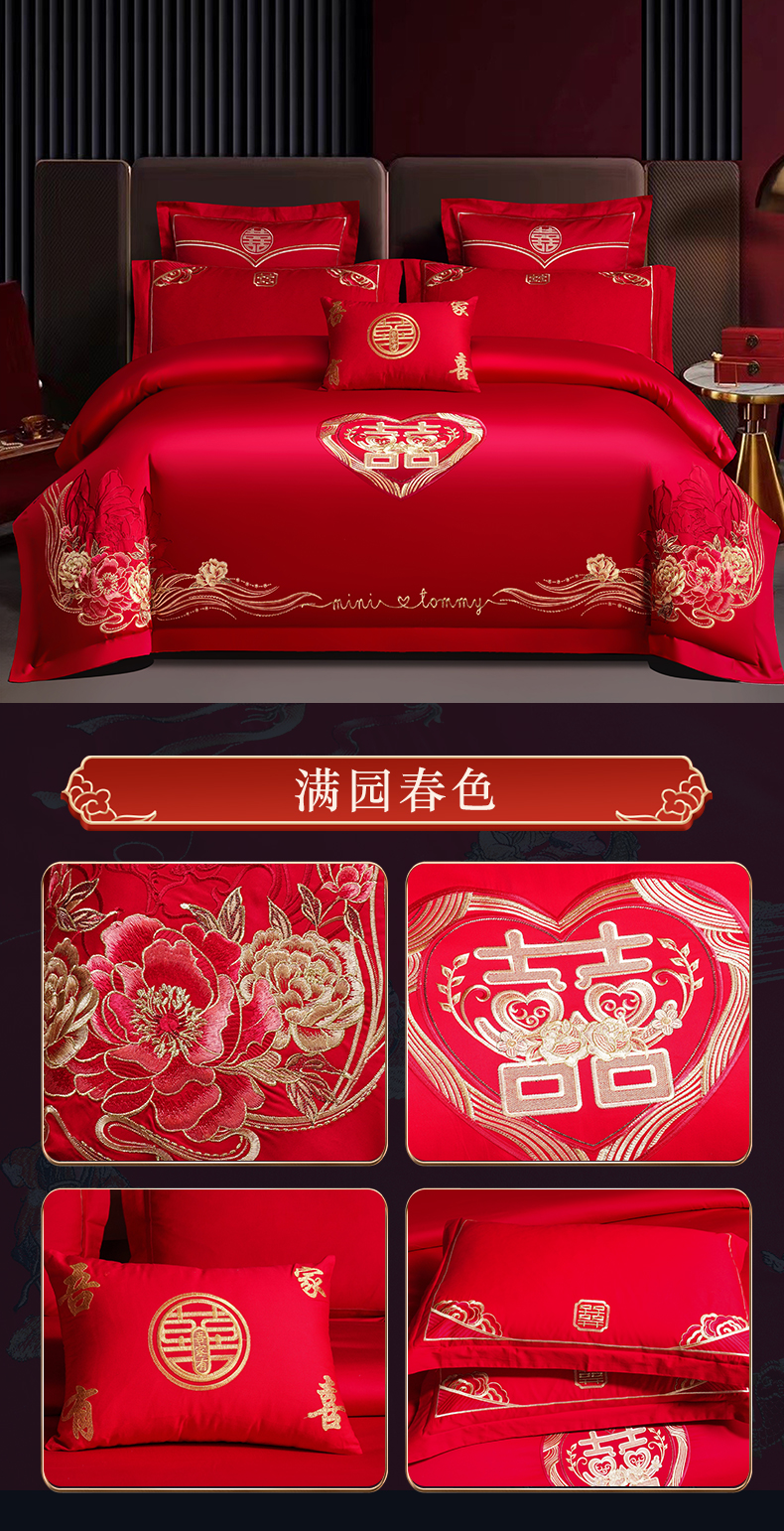 当前位置: 91家纺网 > 商品网购 > 床品套件 > 四件套 > 婚庆四件套 > 富之雅婚庆 2026新款全棉刺绣长绒棉婚庆四件套多件套 龙凤佳缘