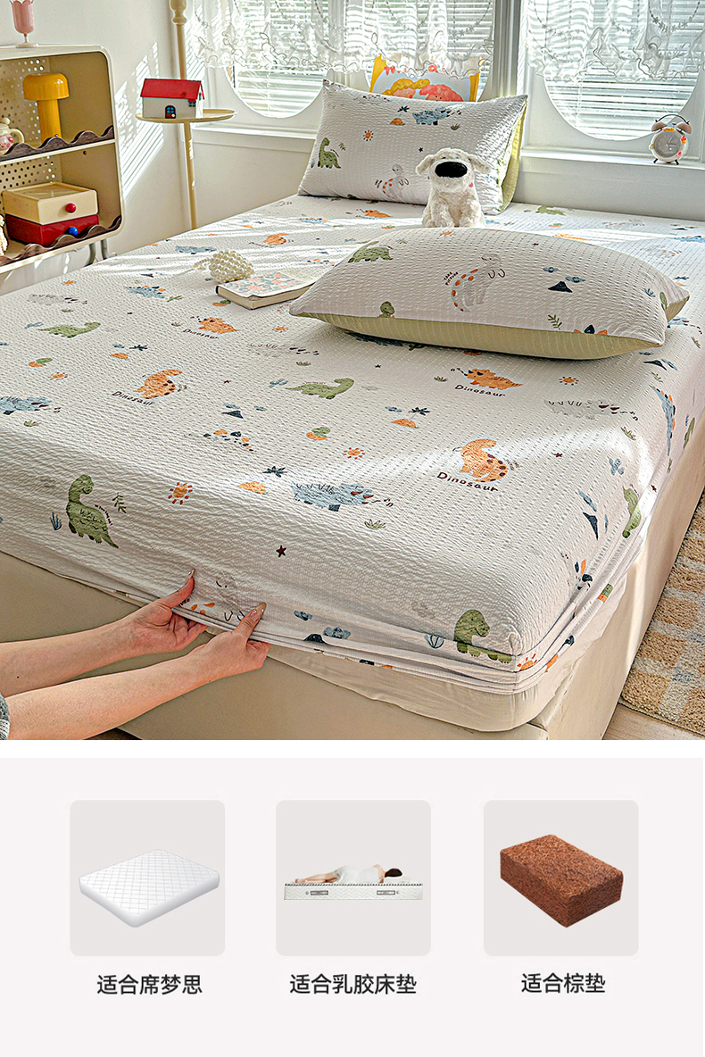 当前位置: 91家纺网 > 商品网购 > 床上用品 > 床笠 > 悦织湾家纺 2026新款老粗布印花床单床笠床笠三两件套春秋学生宿舍单双人床笠 恐龙日记