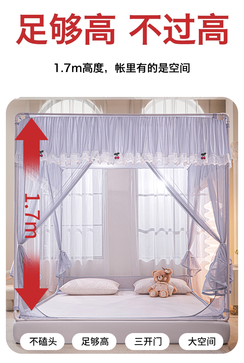 (总)雪姿家纺 2024新款韩版公主风方顶落地蚊帐-优雅,优雅-海洋兰,优雅-灰色,优雅-抹茶绿,优雅-暖玉色,优雅-雅白色