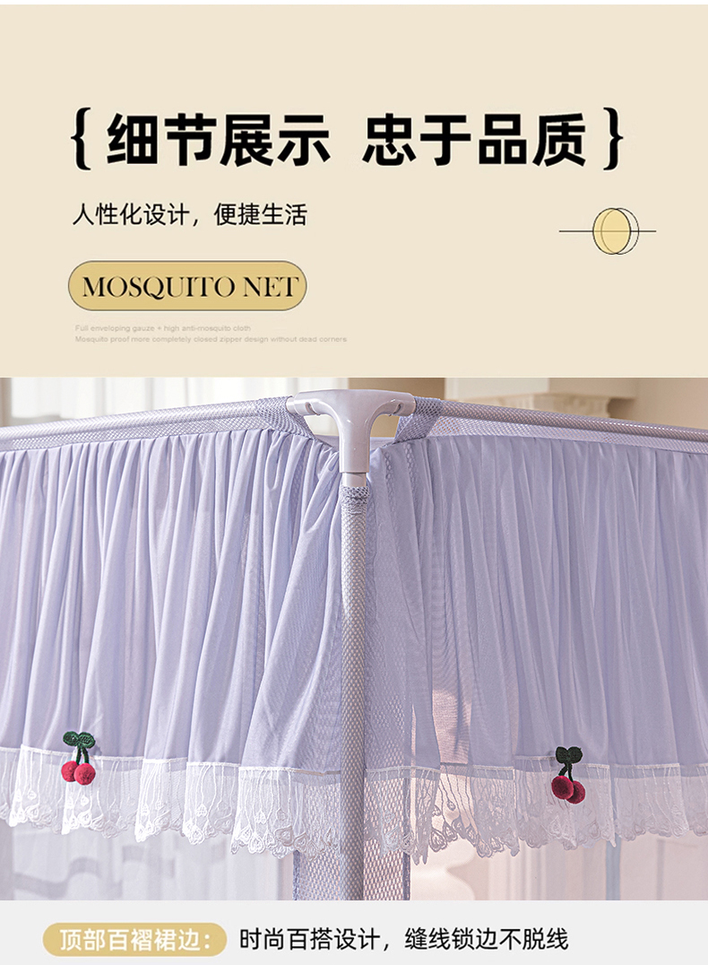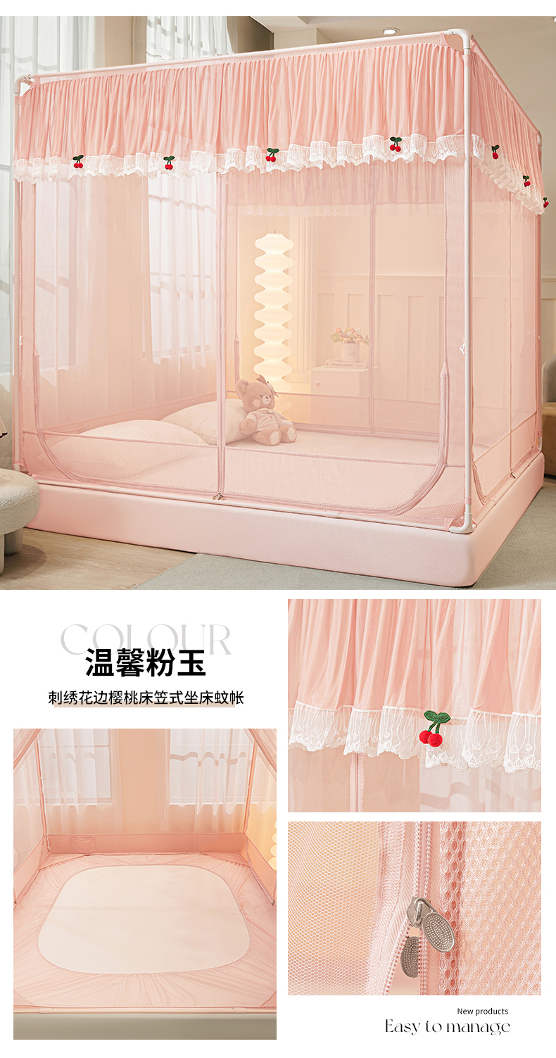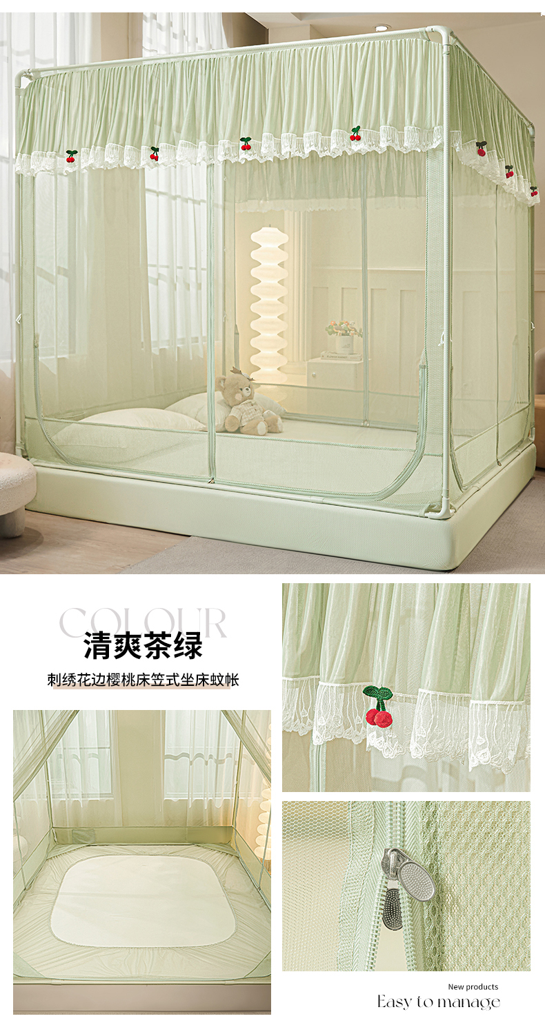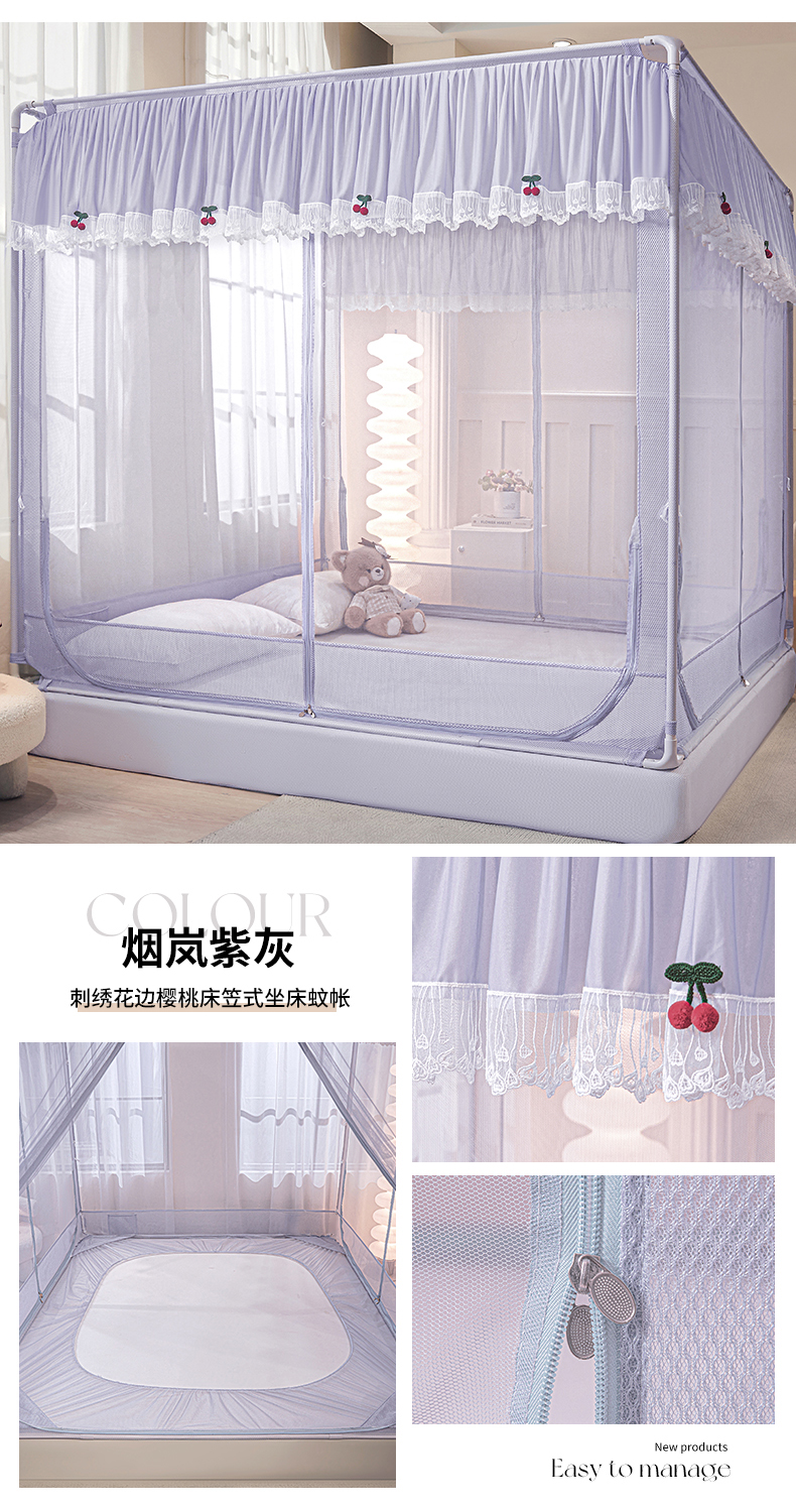 (总)雪姿家纺 2026新款刺绣花边落地宫廷外穿杆蚊帐-落地樱桃,刺绣花边樱桃-烟岚紫灰,刺绣花边樱桃-白色,刺绣花边樱桃-清爽茶绿,刺绣花边樱桃-温柔杏色,刺绣花边樱桃-温馨粉玉