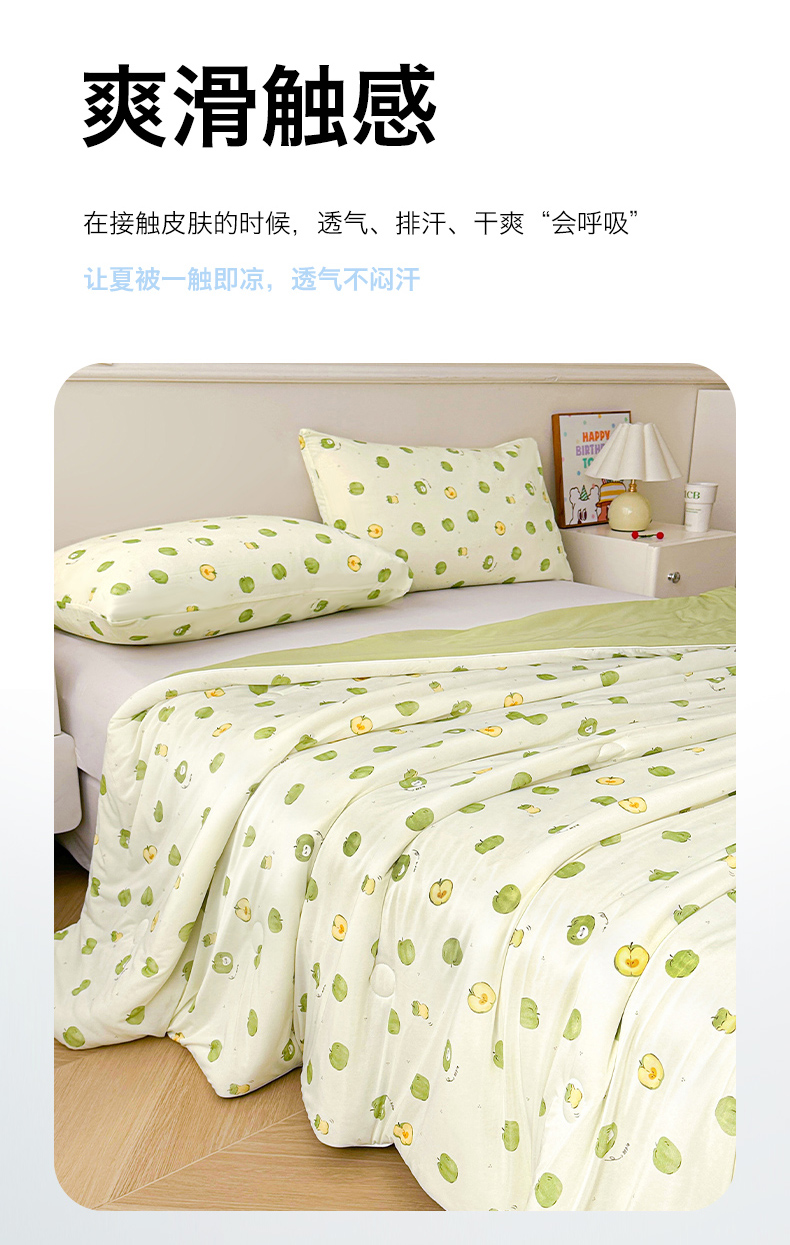 悦织语 2026新款凉感丝(含氨纶)双面凉感冰丝夏凉被空调被 青苹果
