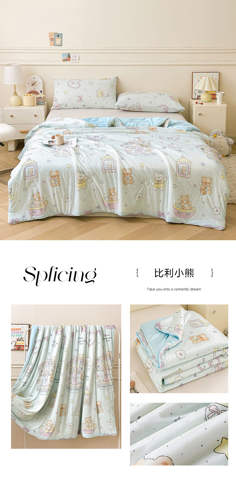 (总)悦织语 2026新款凉感丝(含氨纶)双面凉感冰丝夏凉被空调被,甜心草莓,比利小熊,好运加马,花花熊,花间集,花蔓,花漾,可爱熊猫,蓝格物语,萌宠乐园,青苹果,兔兔密语