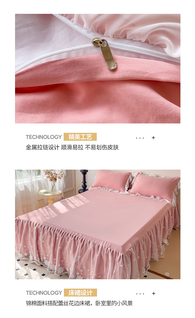商品名称:睡美人 2026新款锦棉蕾丝款系列韩版公主风床裙四件套-花舞 花舞-锦豆沙