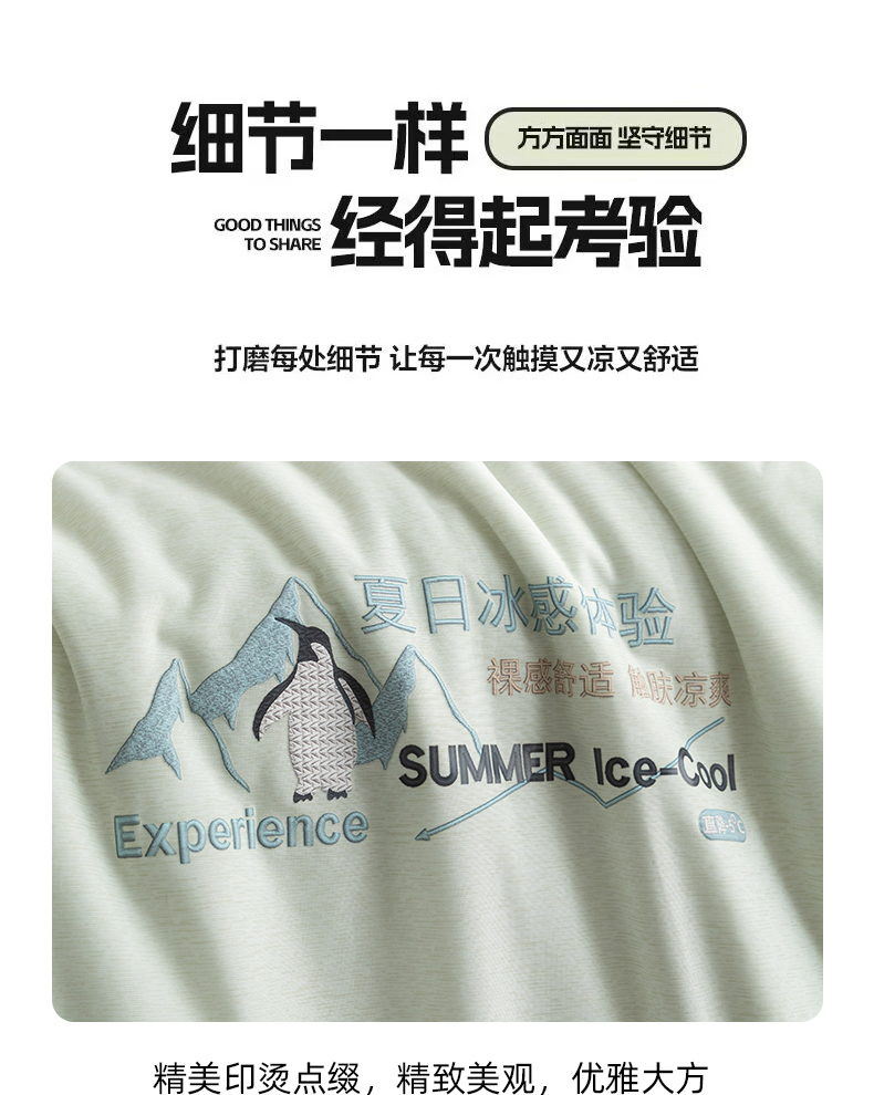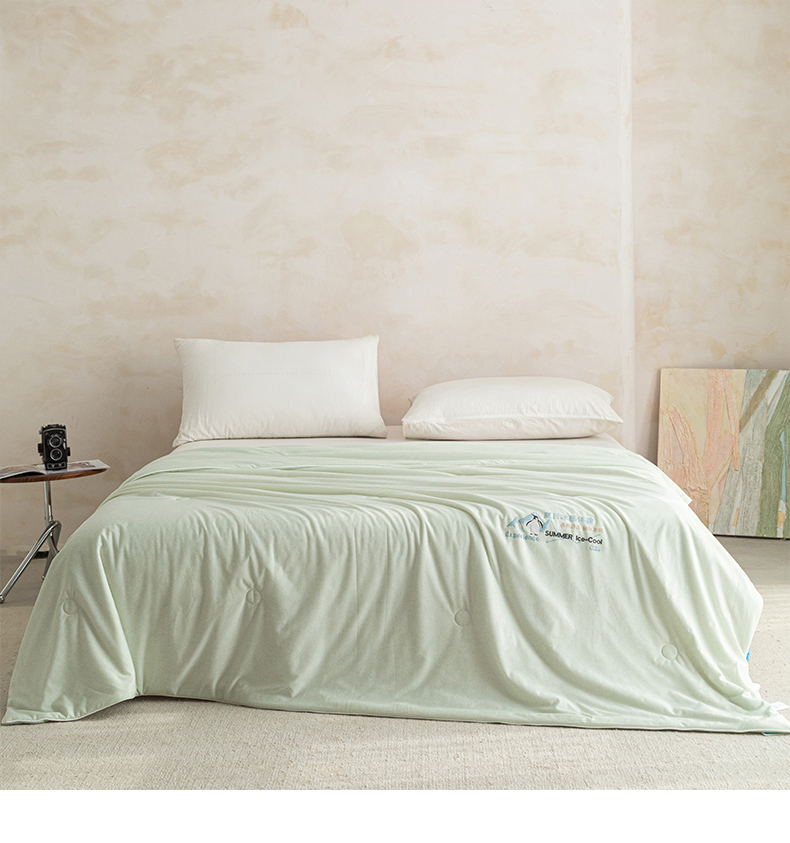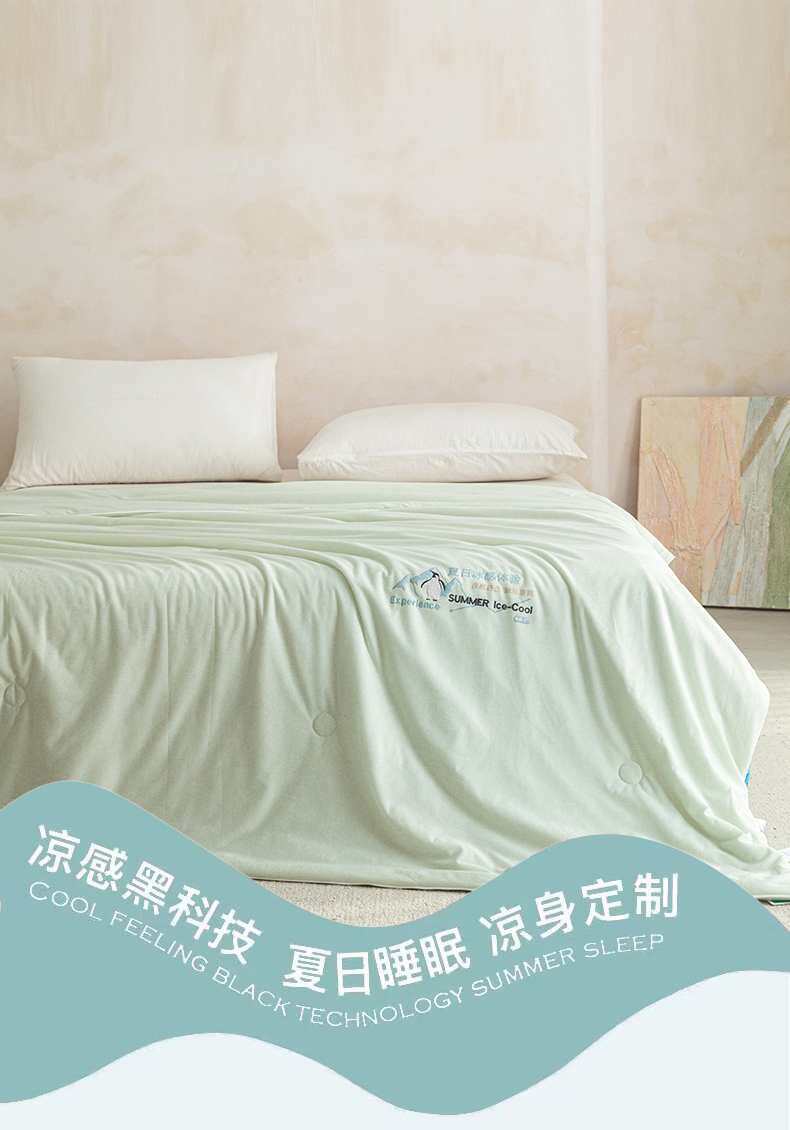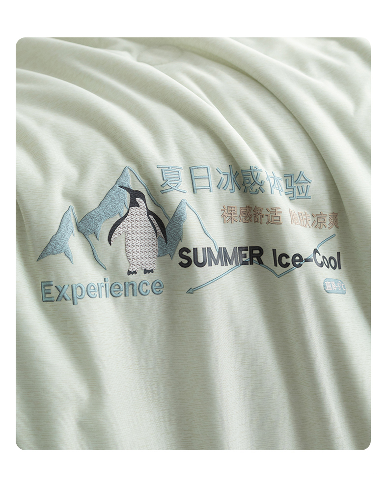 商品名称:亿莱鑫 2026春夏新款纯色仿锦氨凉感夏被夏凉被空调被 夏日企鹅-绿