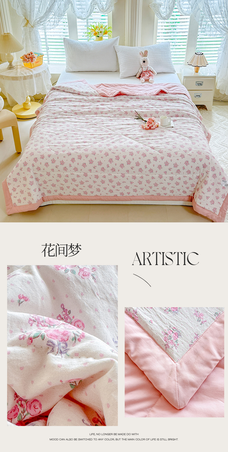 (总)优贝家纺 2026新款100%莱赛尔天丝面料数码印花天丝夏被四件套,花开半夏,陌上花开-粉,诺曼花园,倾城